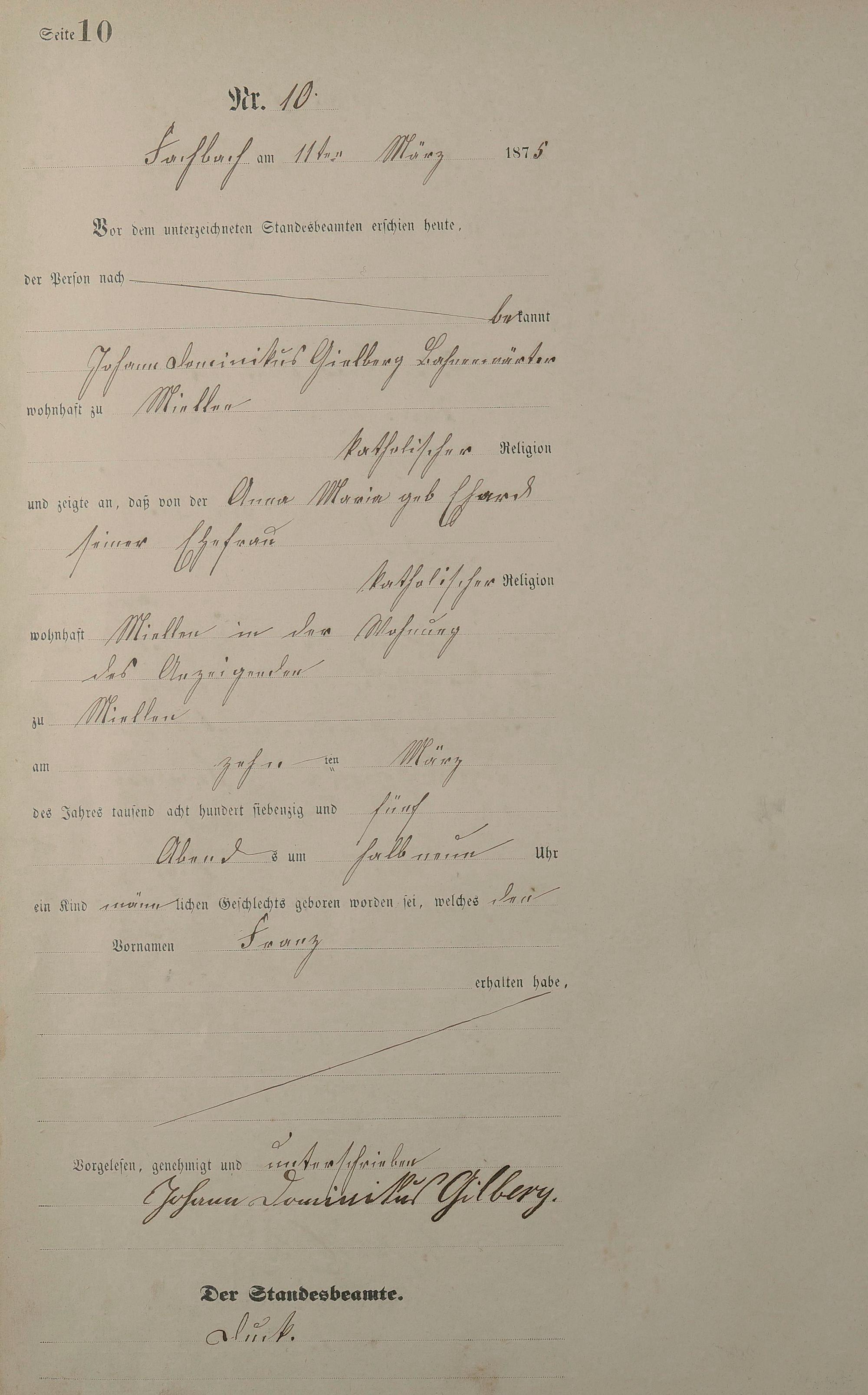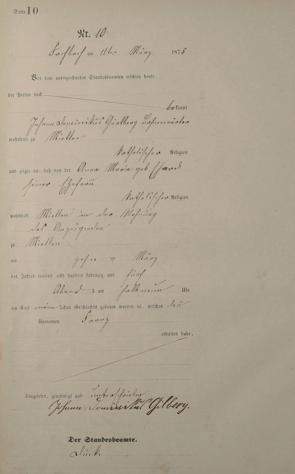 Geburtsregister 1875