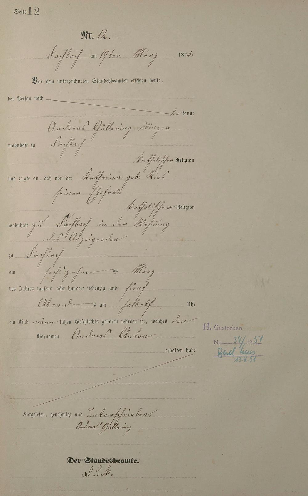 Geburtsregister 1875