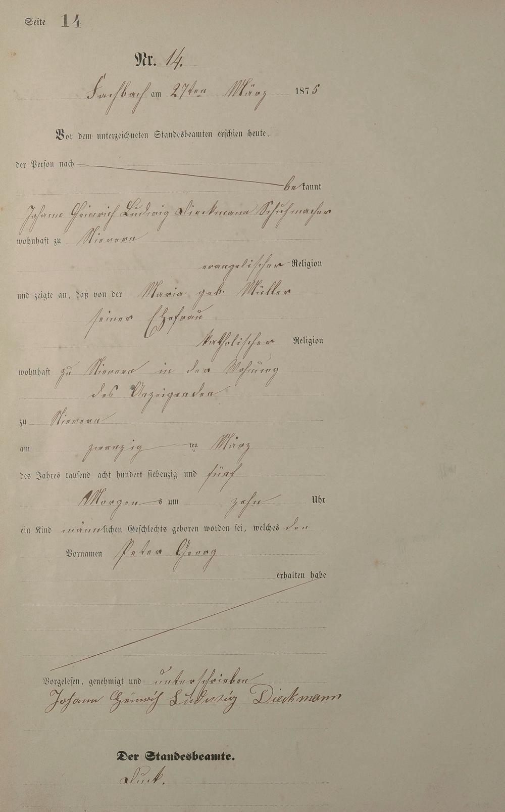 Geburtsregister 1875