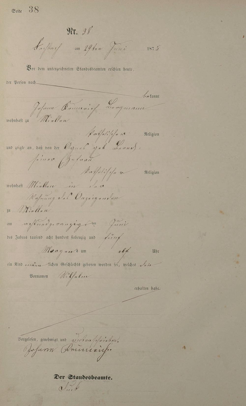 Geburtsregister 1875