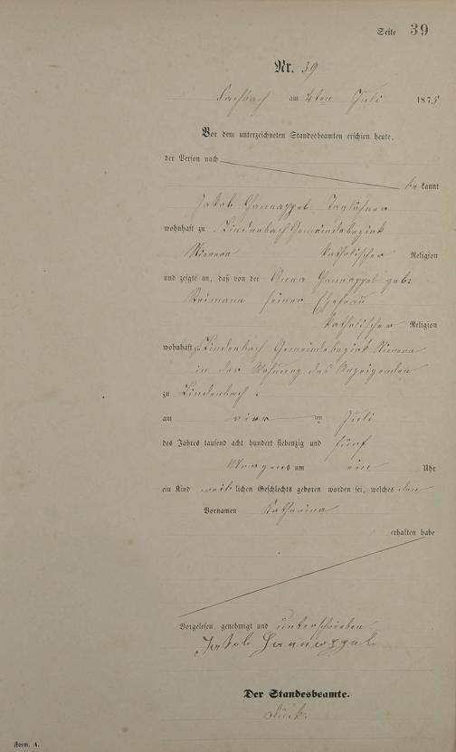 Geburtsregister 1875