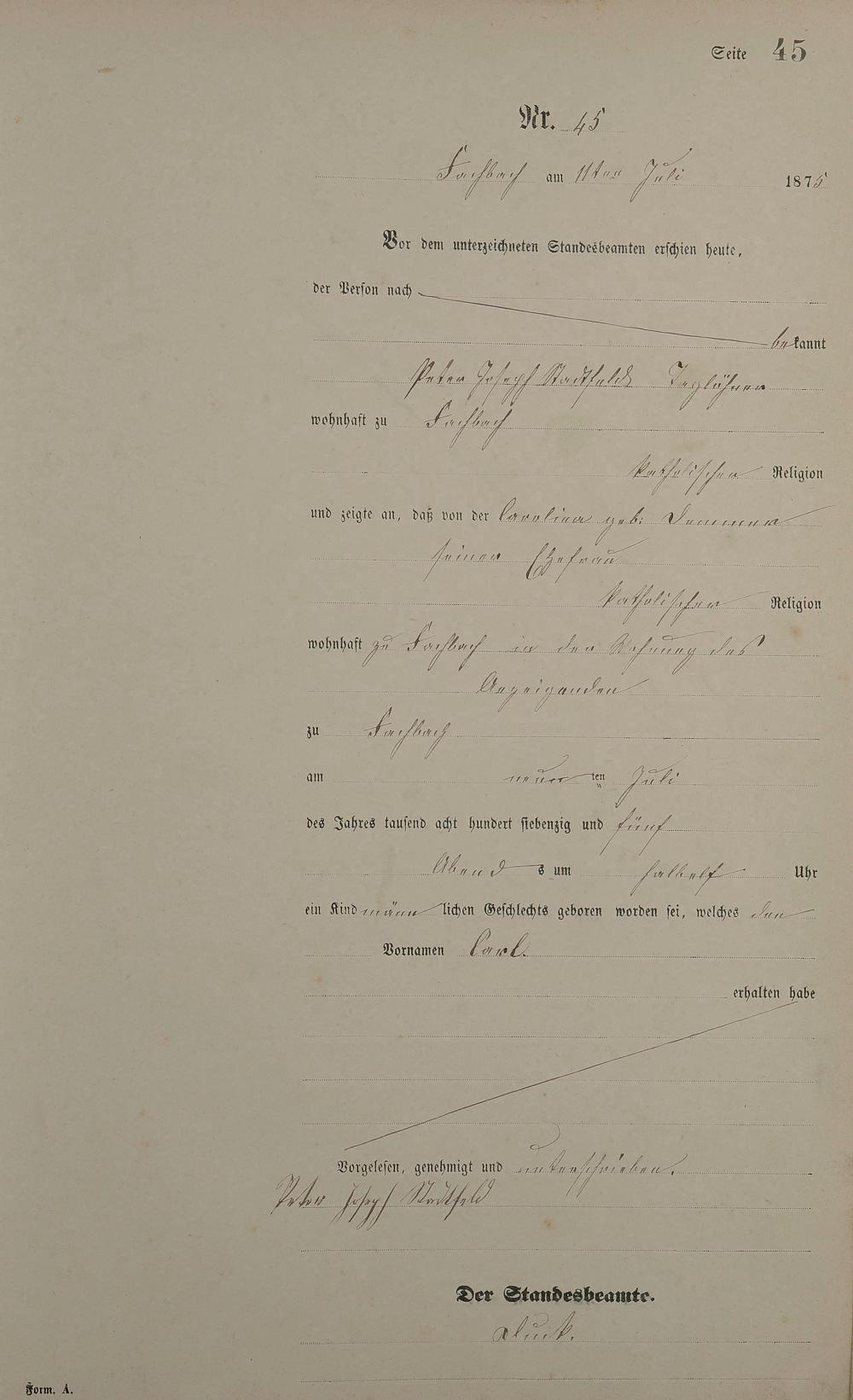Geburtsregister 1875