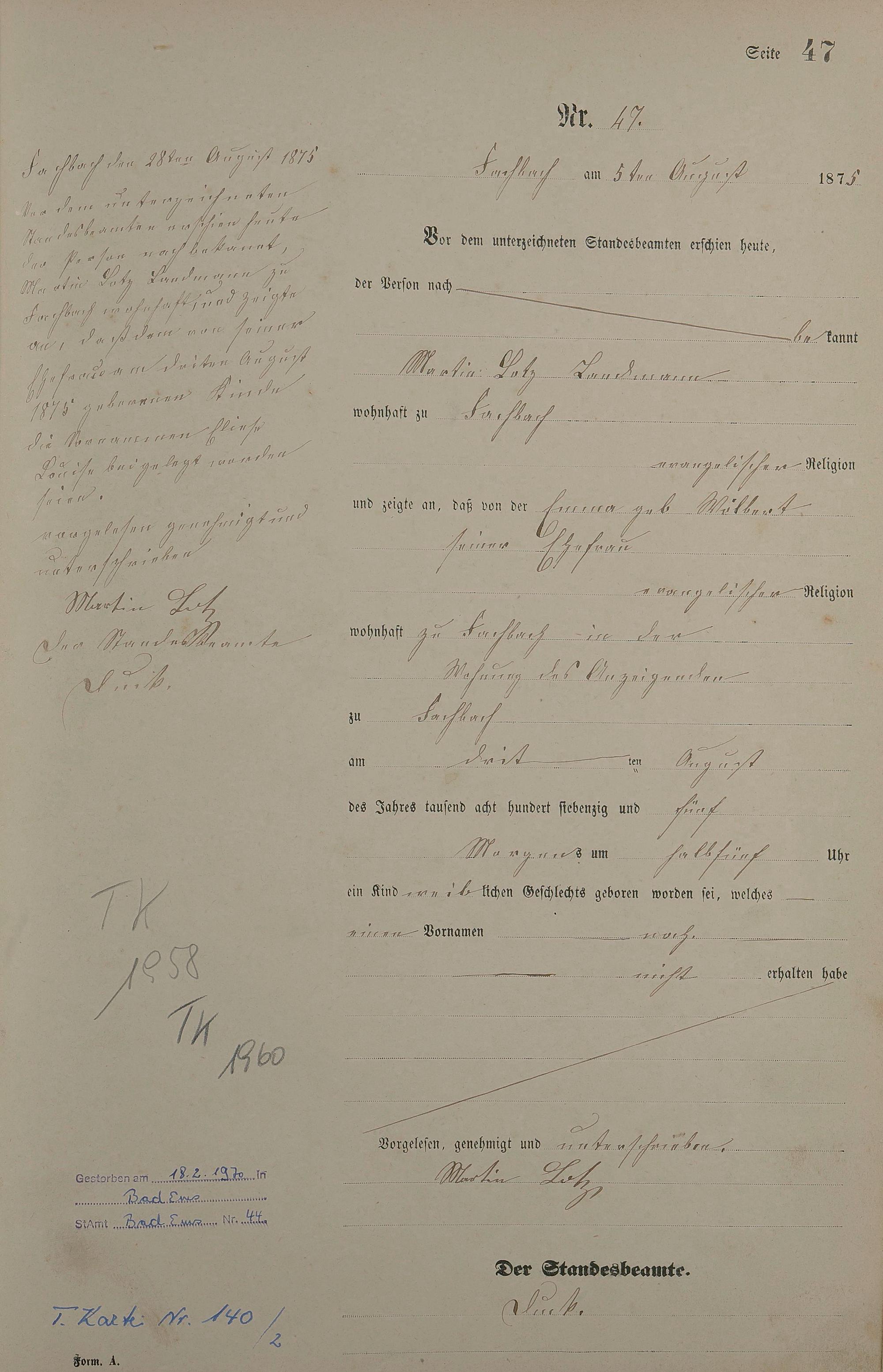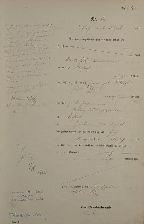 Geburtsregister 1875