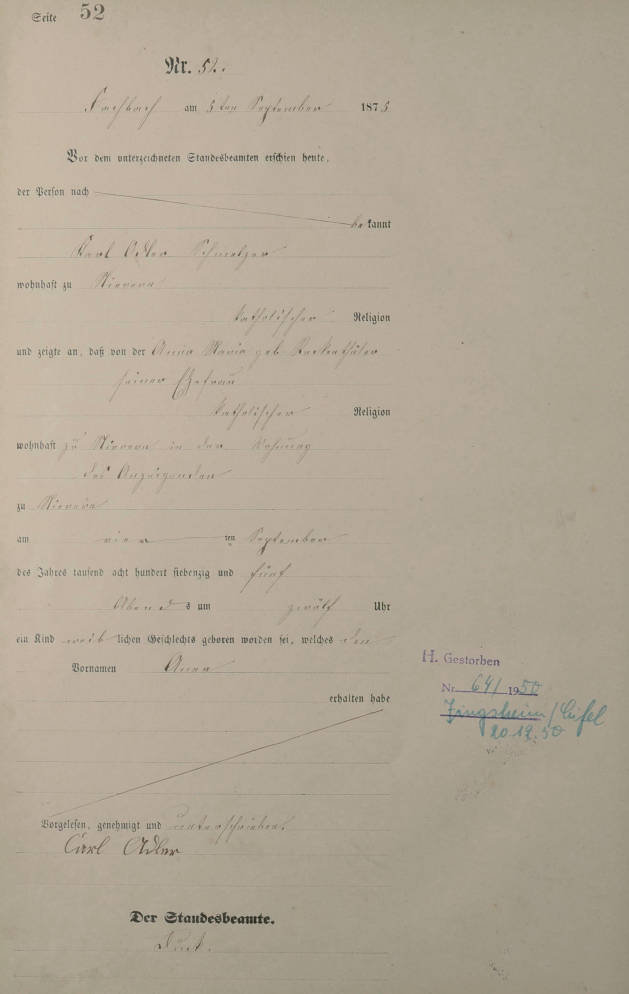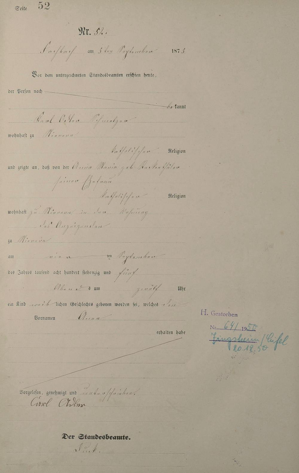 Geburtsregister 1875