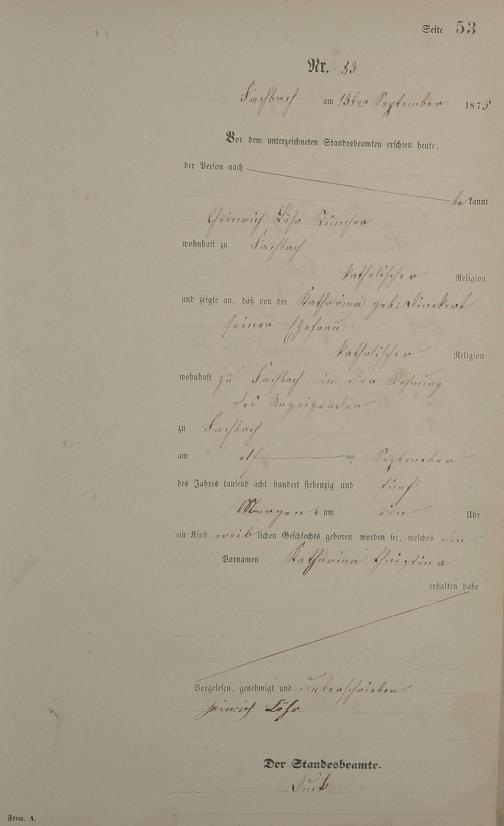 Geburtsregister 1875