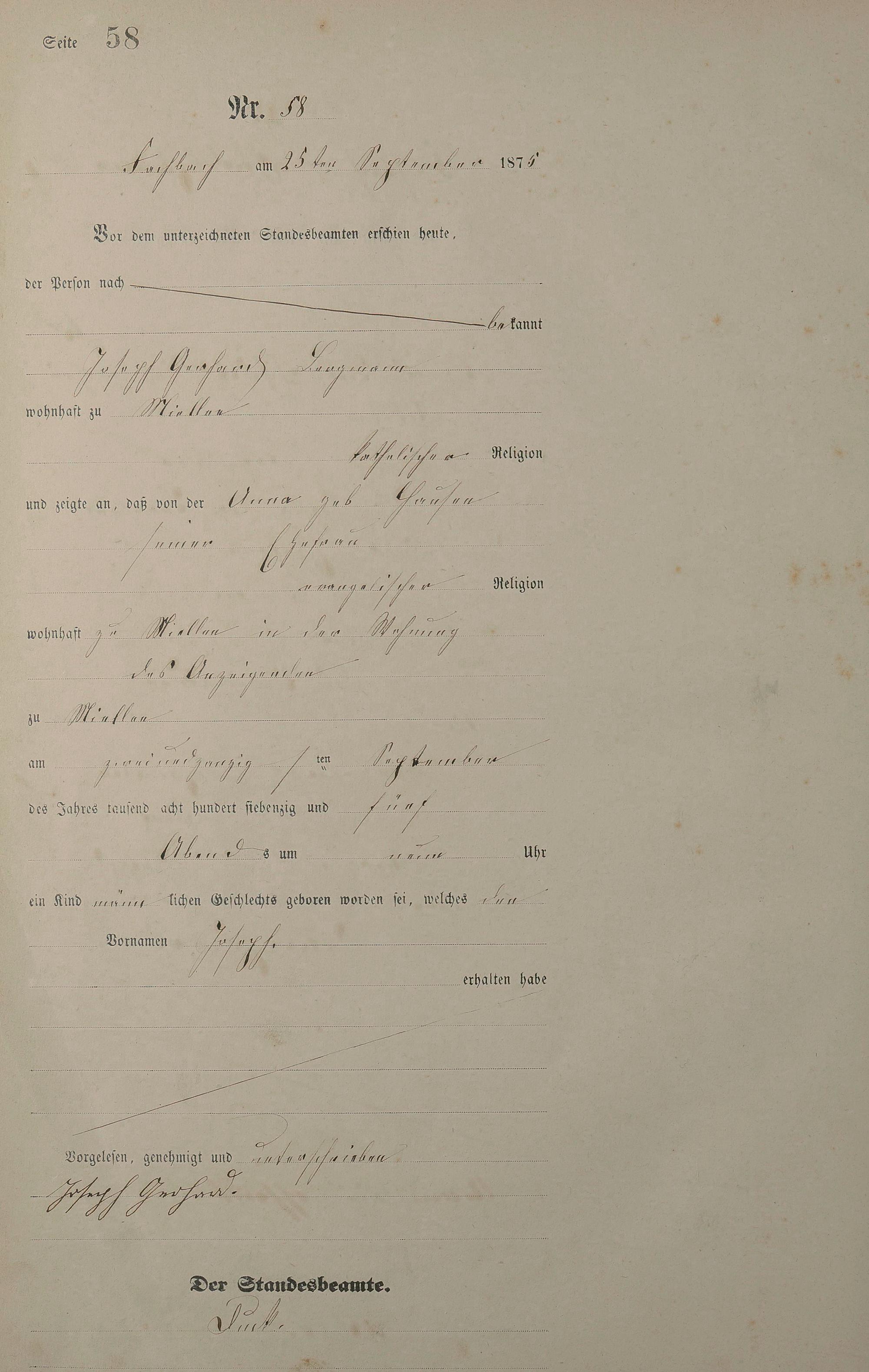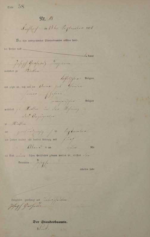 Geburtsregister 1875