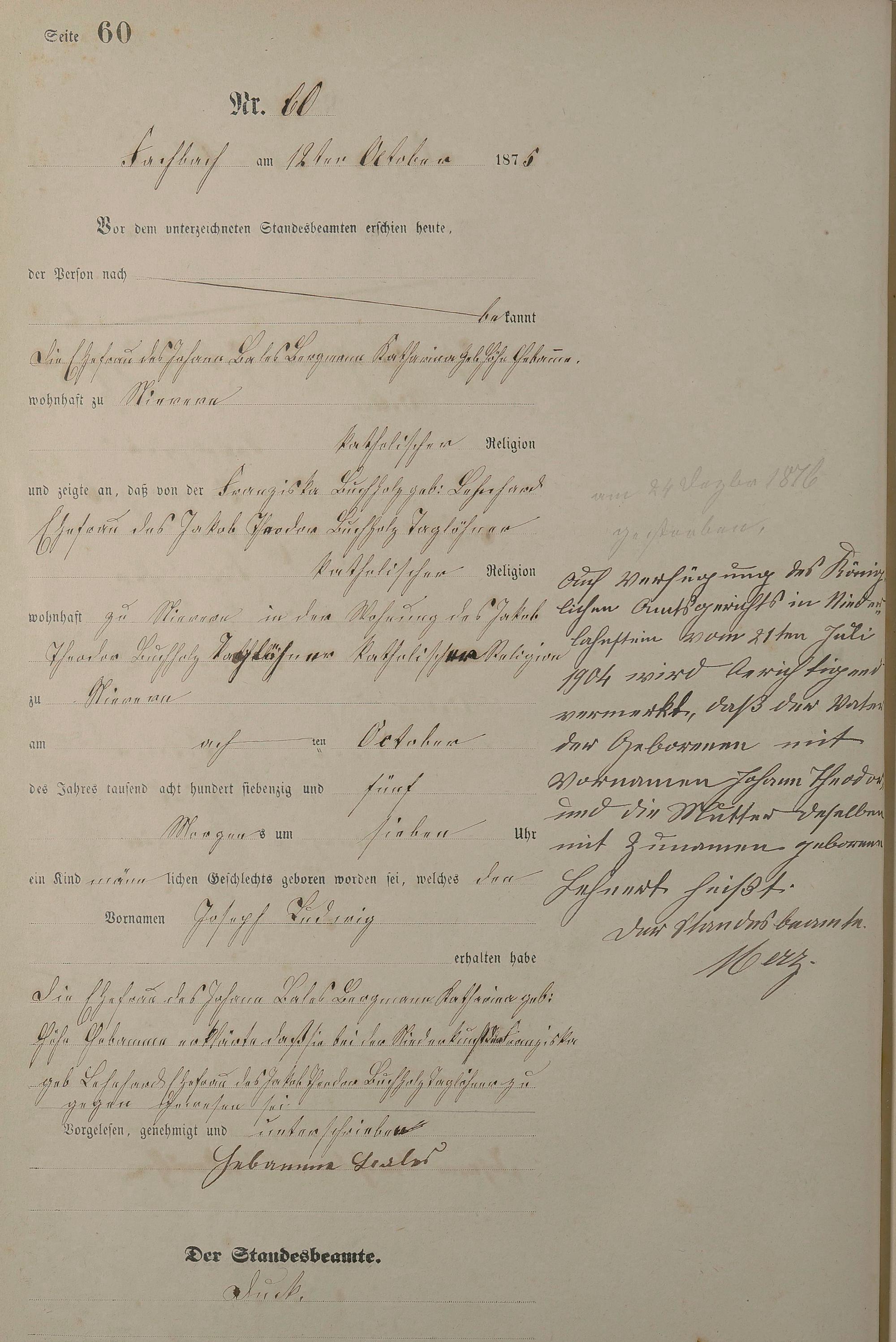 Geburtsregister 1875