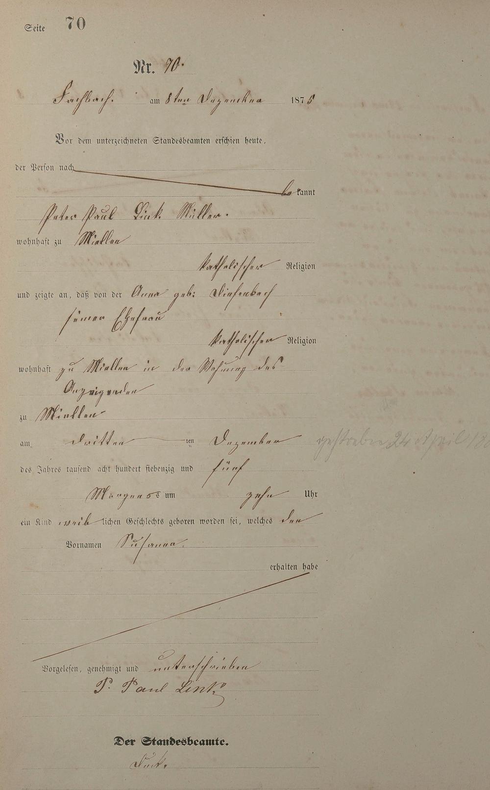 Geburtsregister 1875