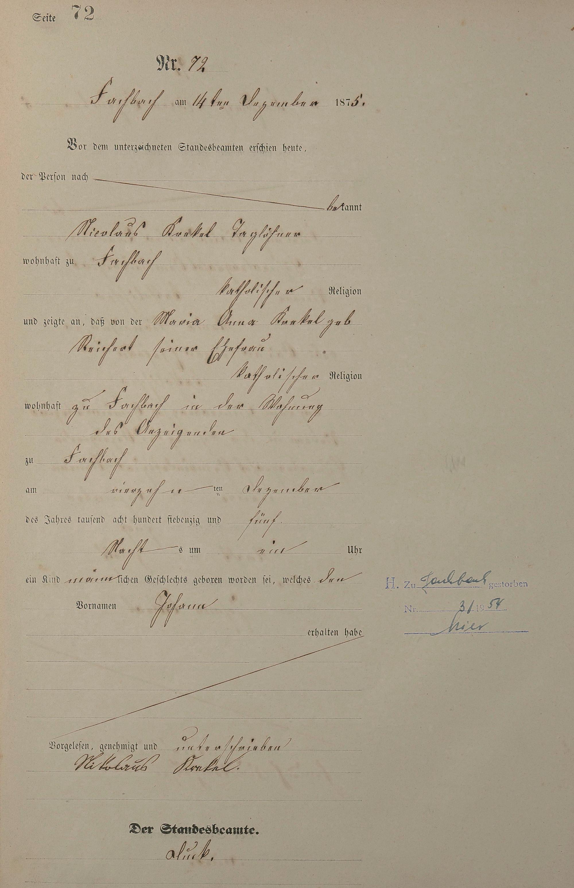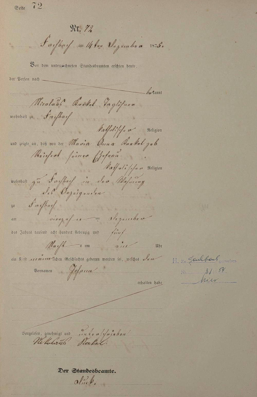 Geburtsregister 1875