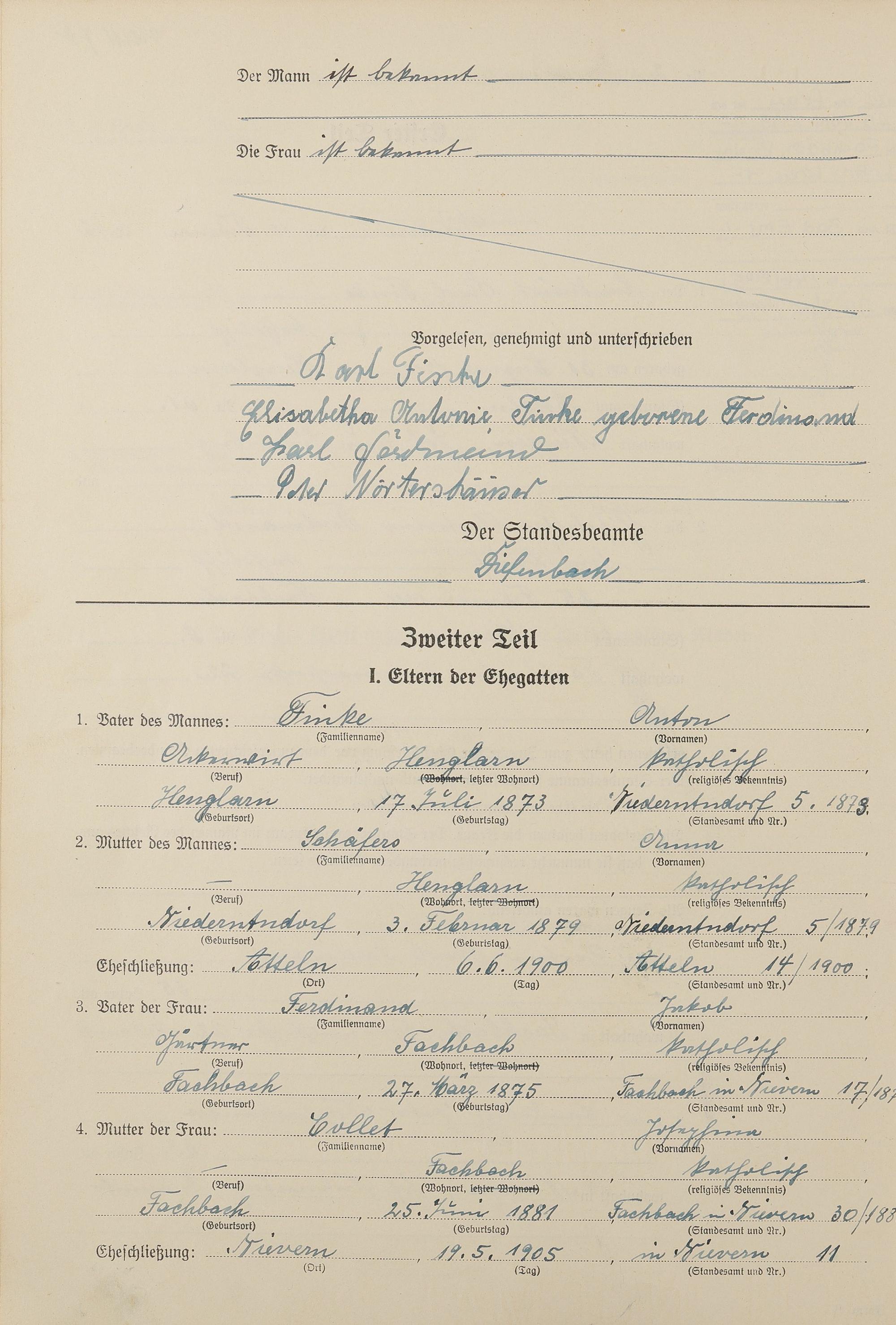 Heiratsregister 1942