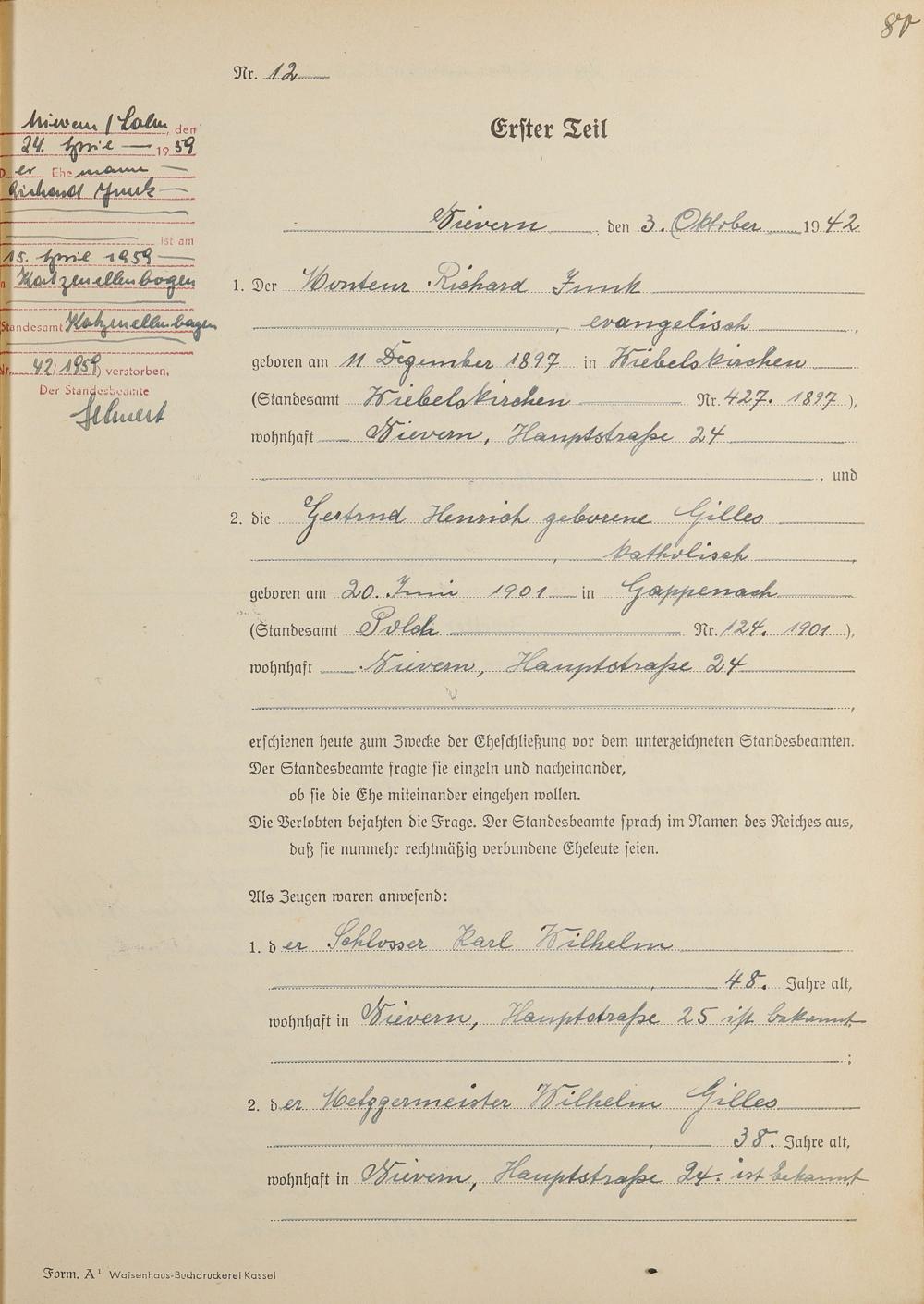Heiratsregister 1942