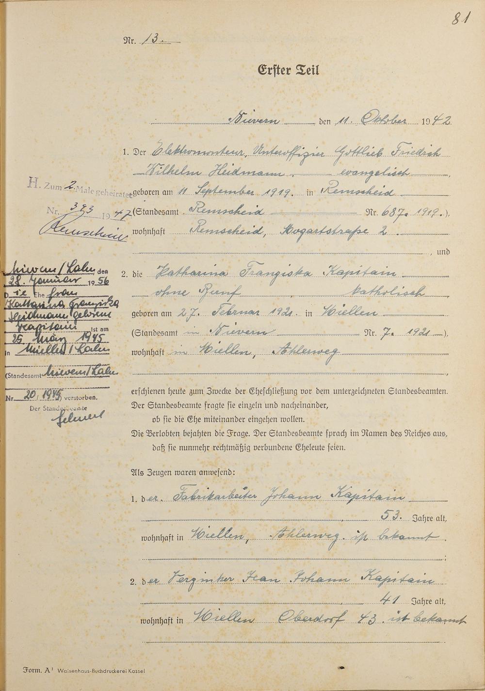 Heiratsregister 1942