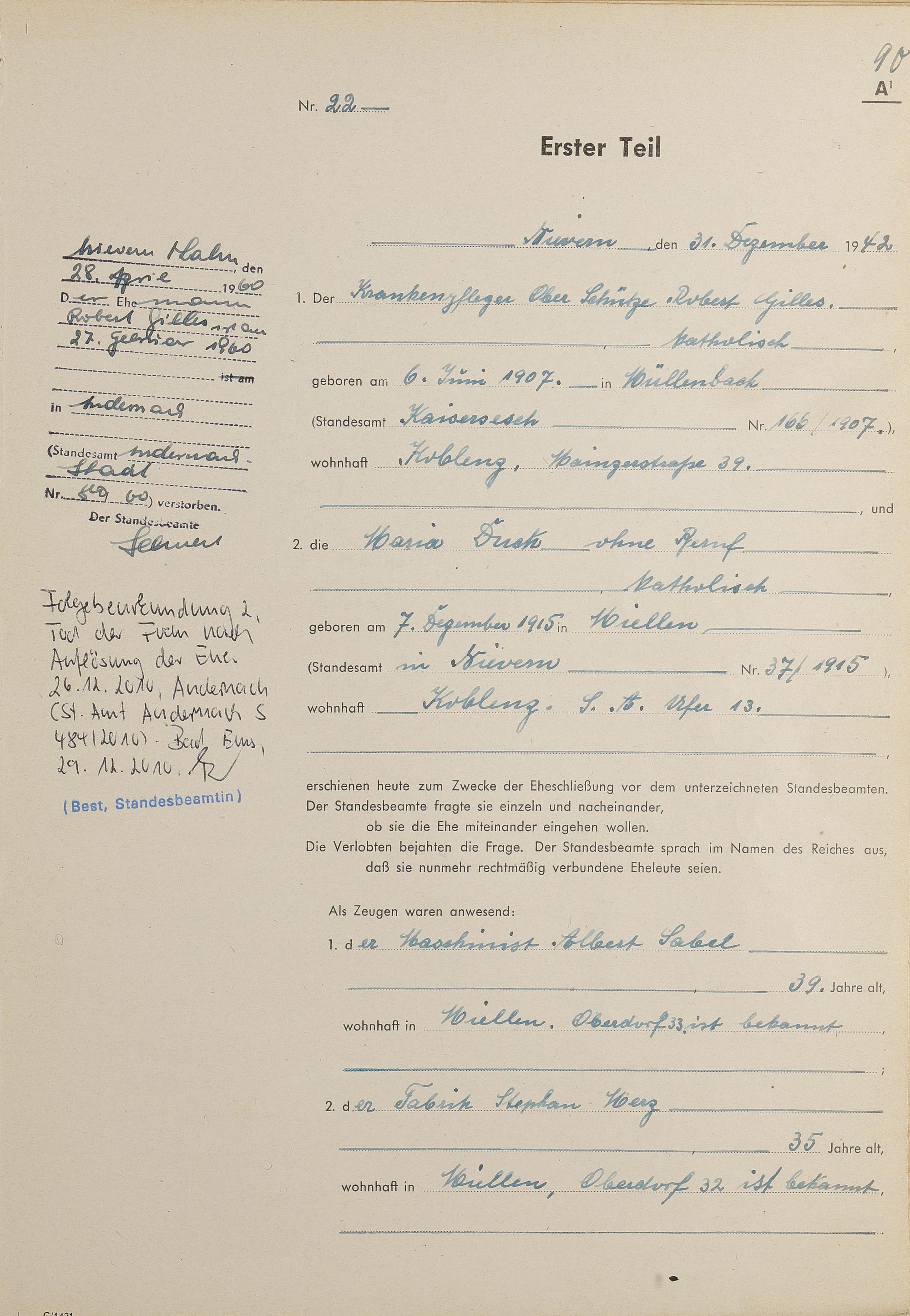 Heiratsregister 1942