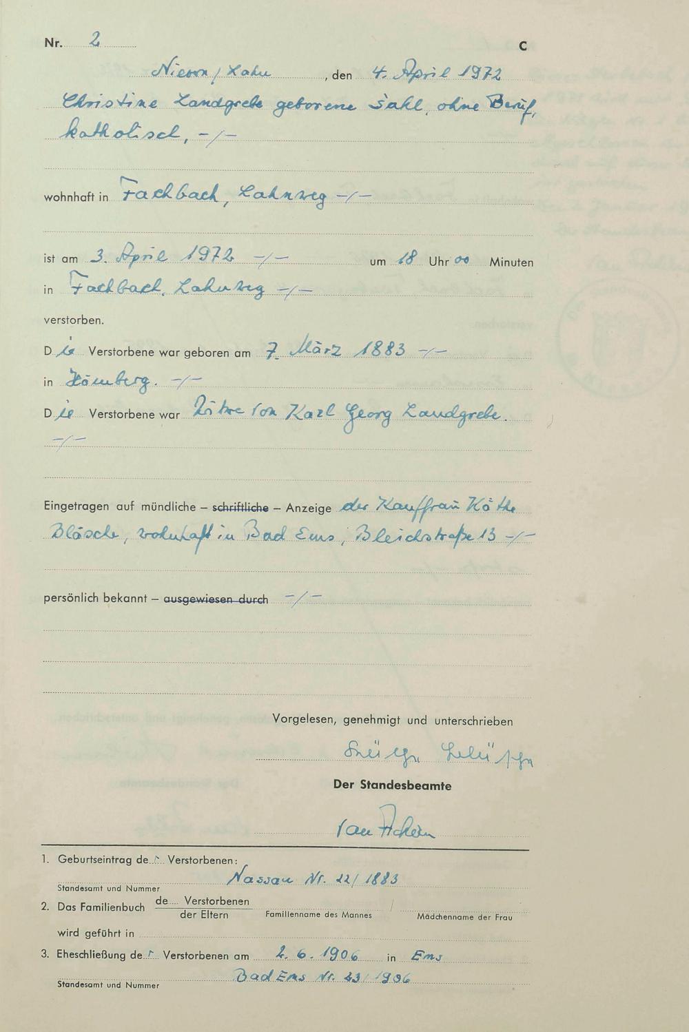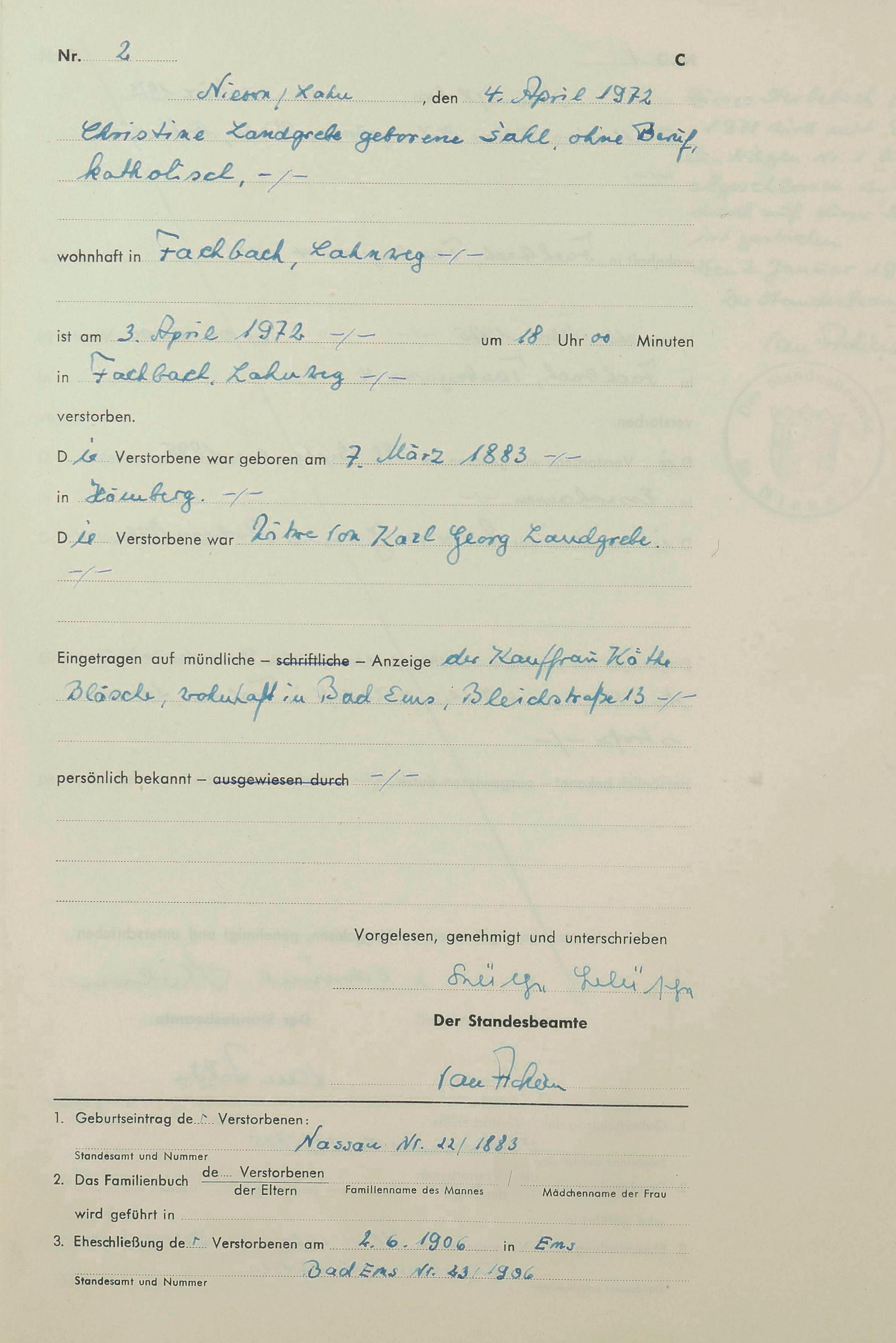Sterberegister 1972