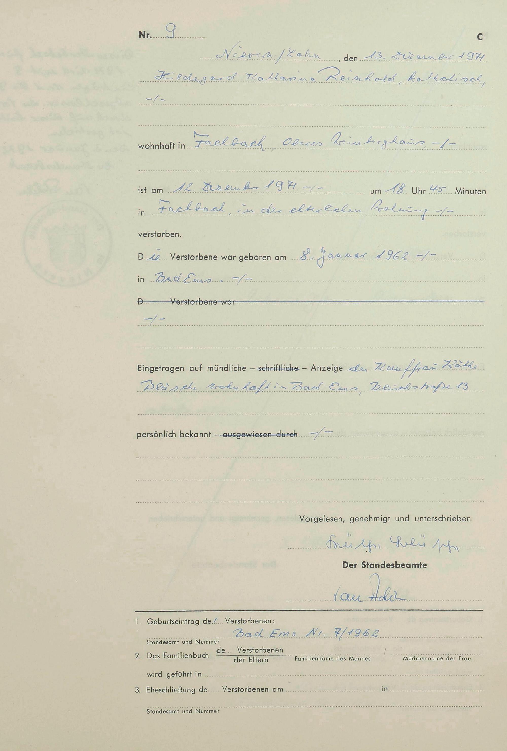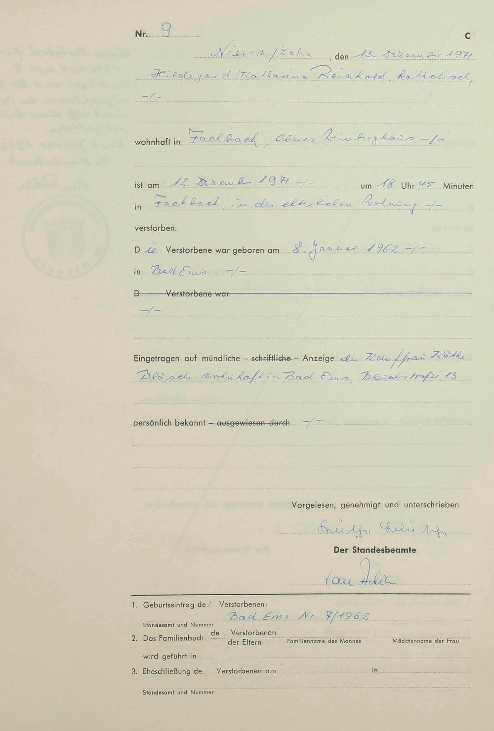 292/23: Sterberegister 1971