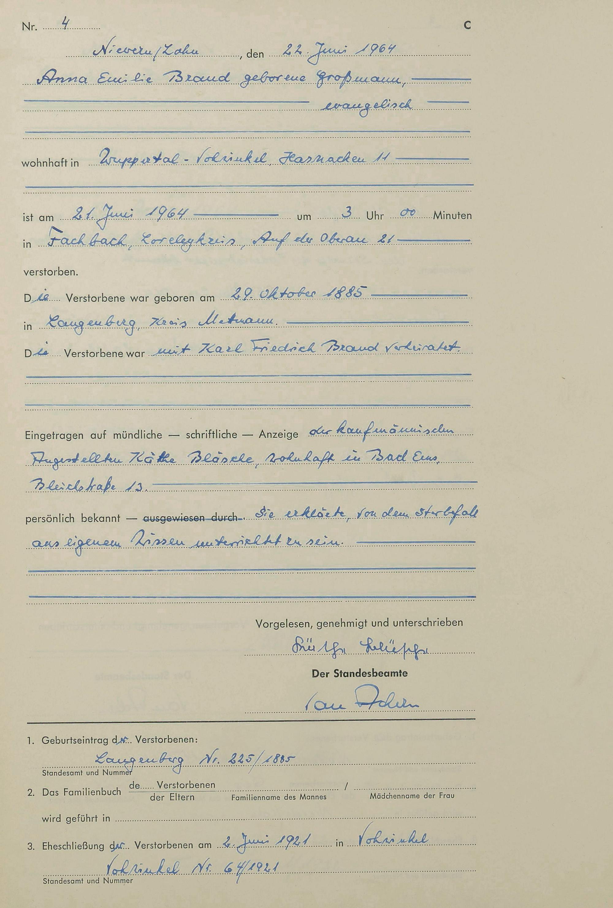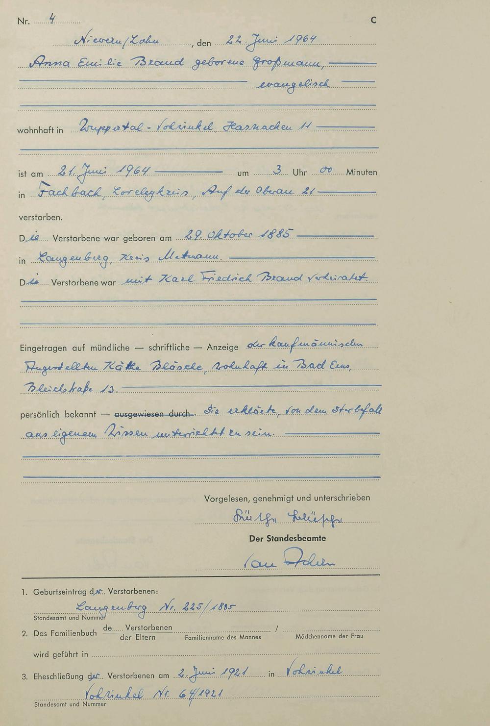 292/16: Sterberegister 1964