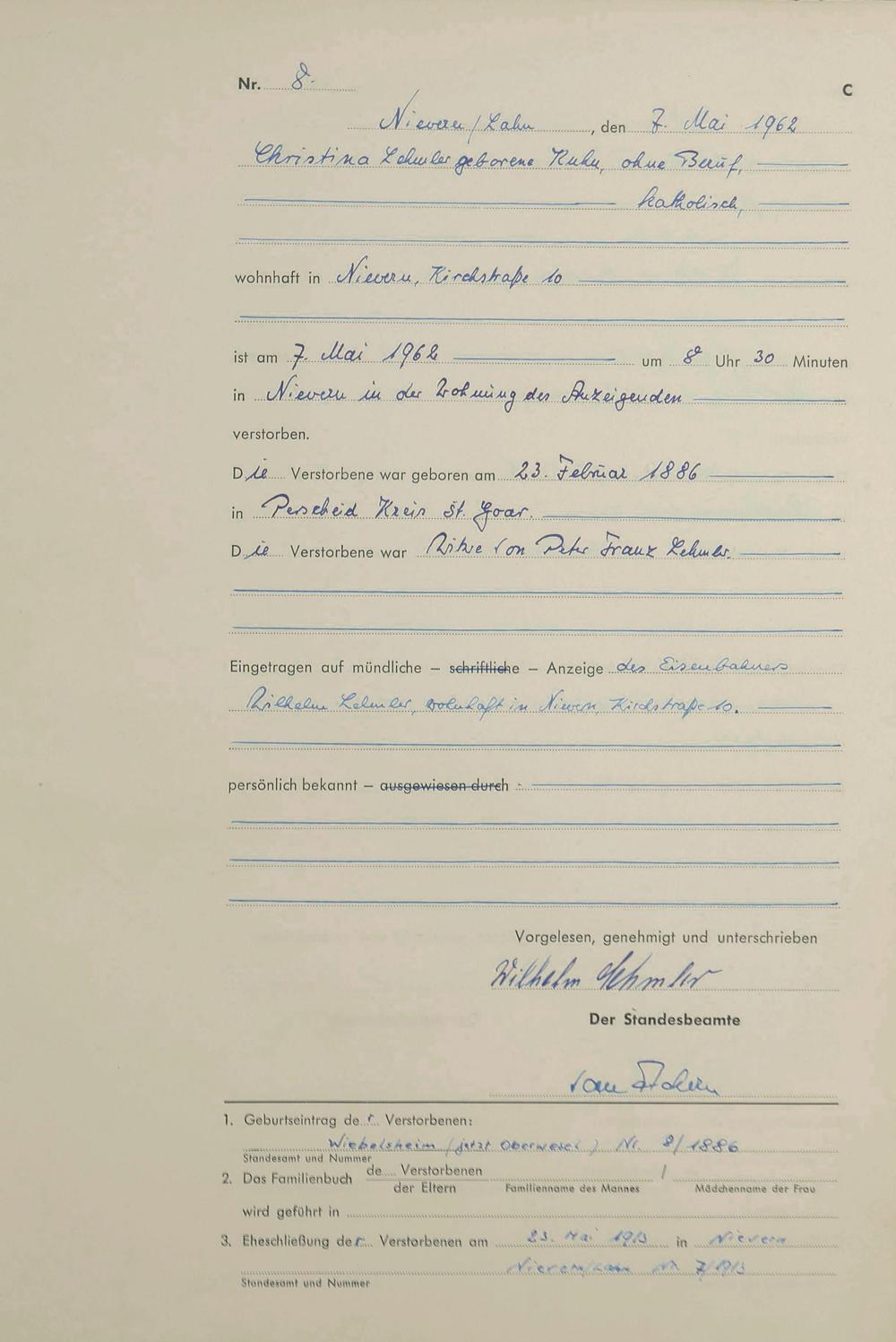 292/14: Sterberegister 1962