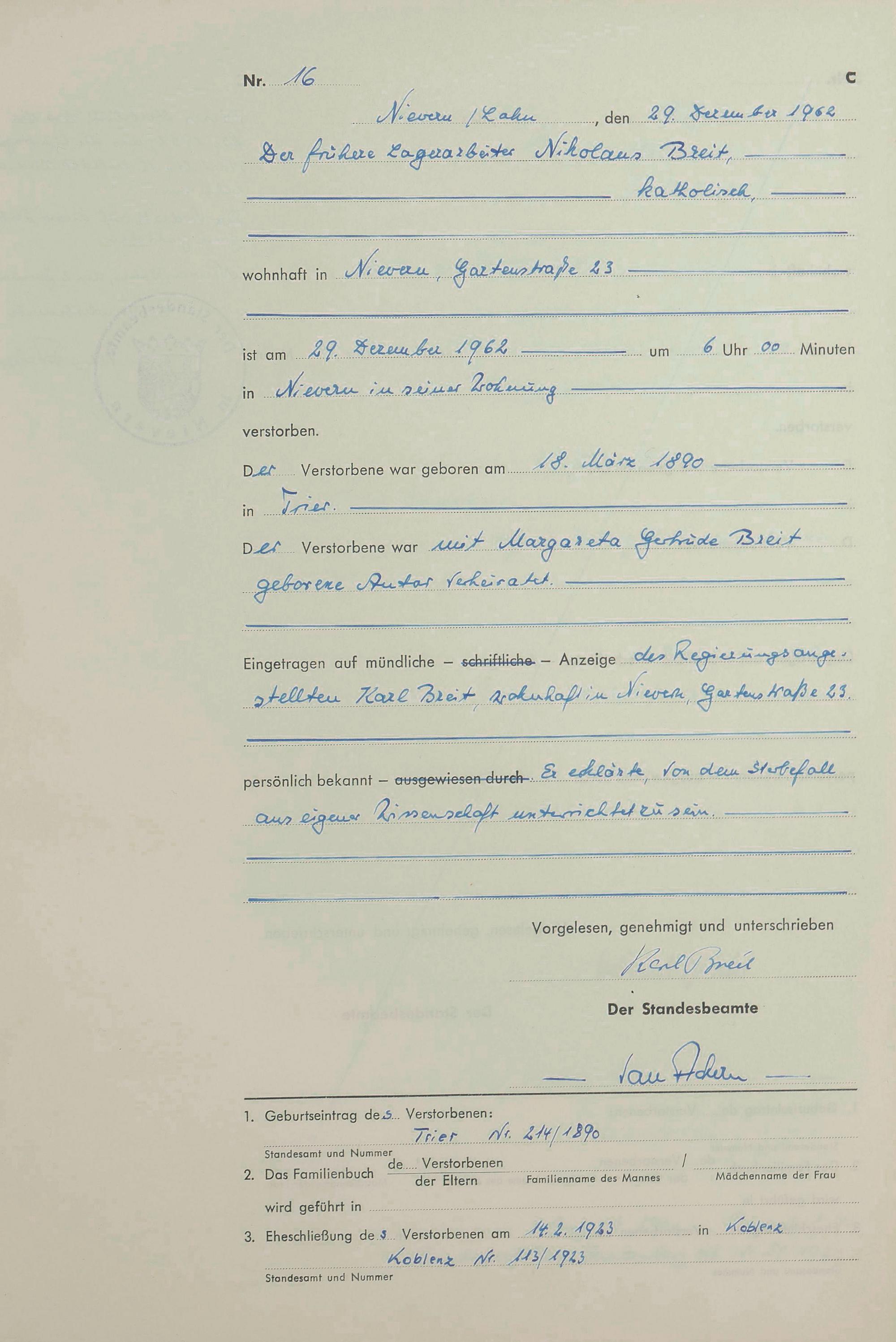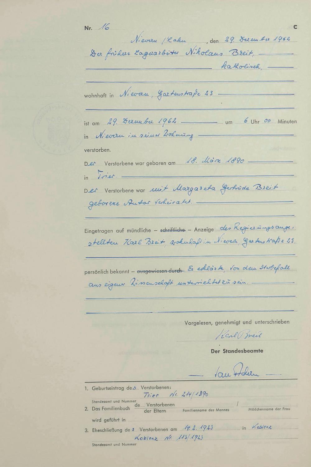 292/14: Sterberegister 1962
