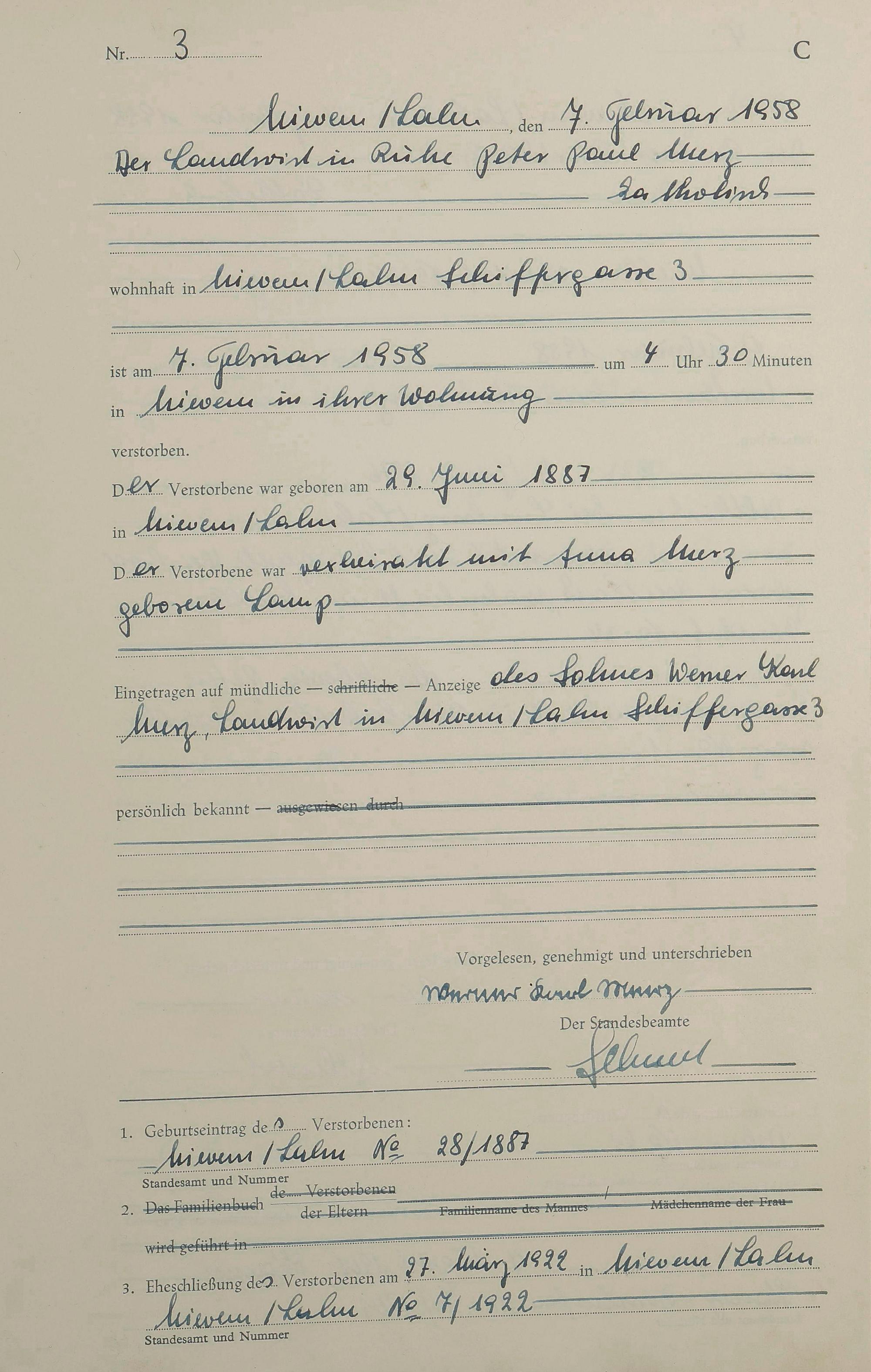 Sterberegister 1958