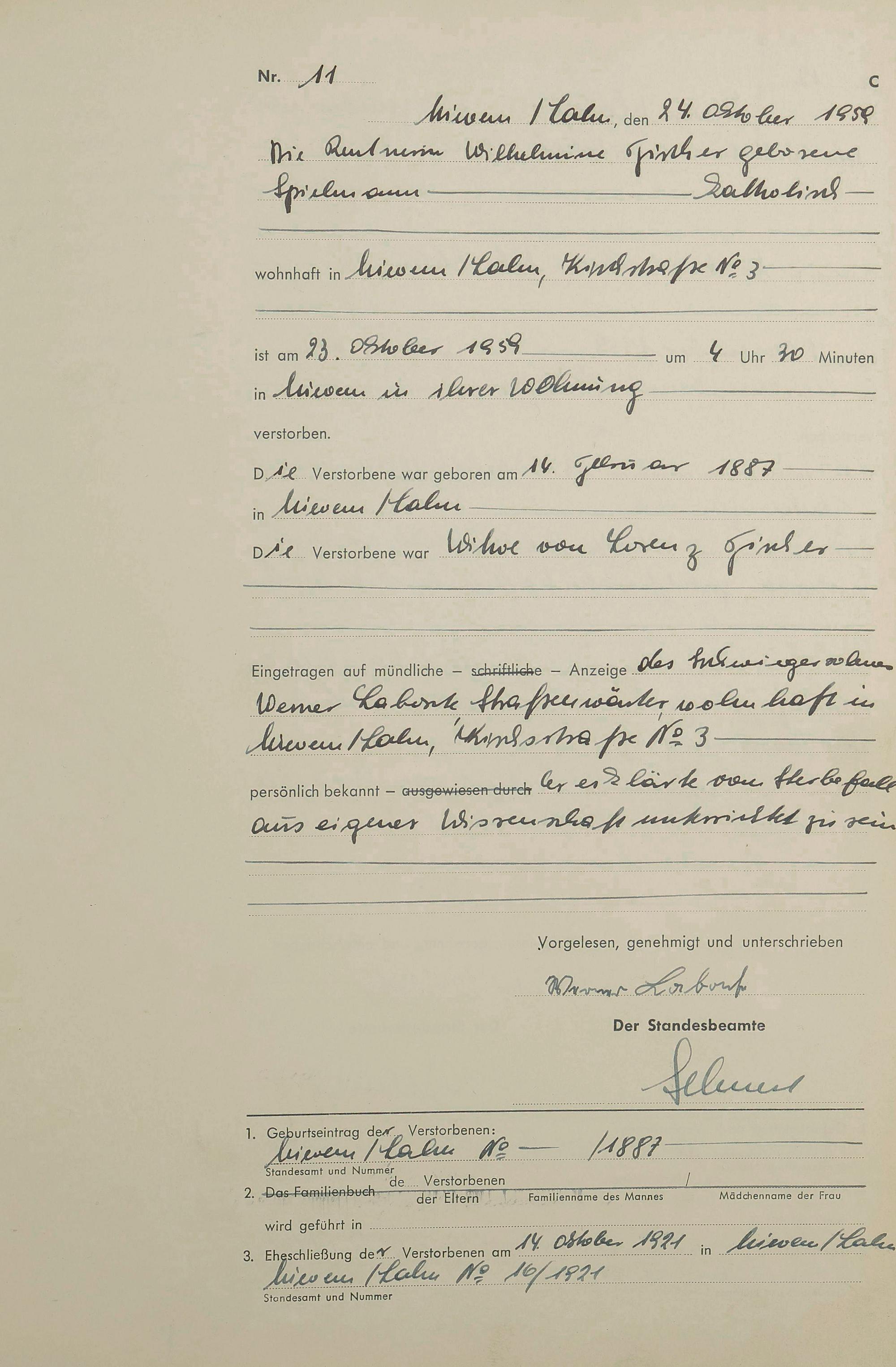 292/11: Sterberegister 1959