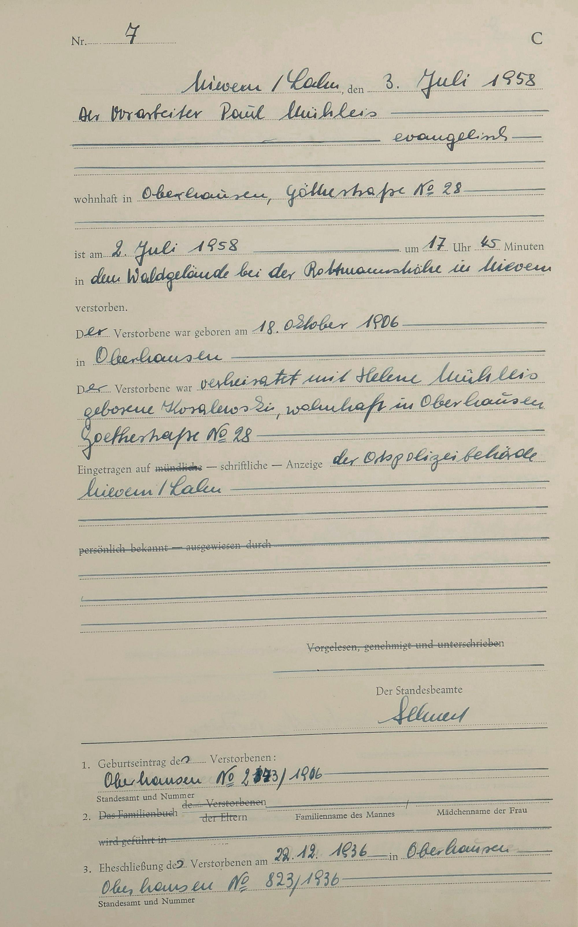 Sterberegister 1958