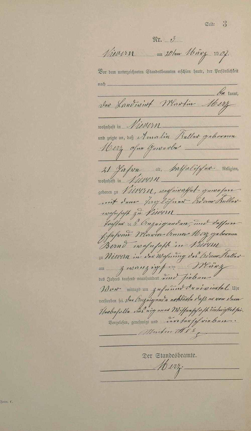Sterberegister 1907