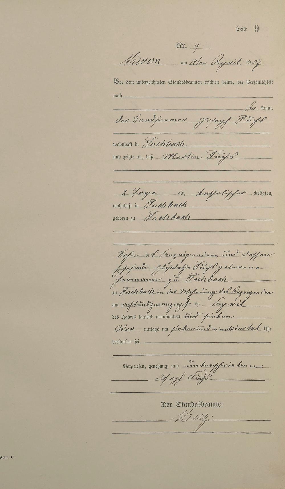 Sterberegister 1907