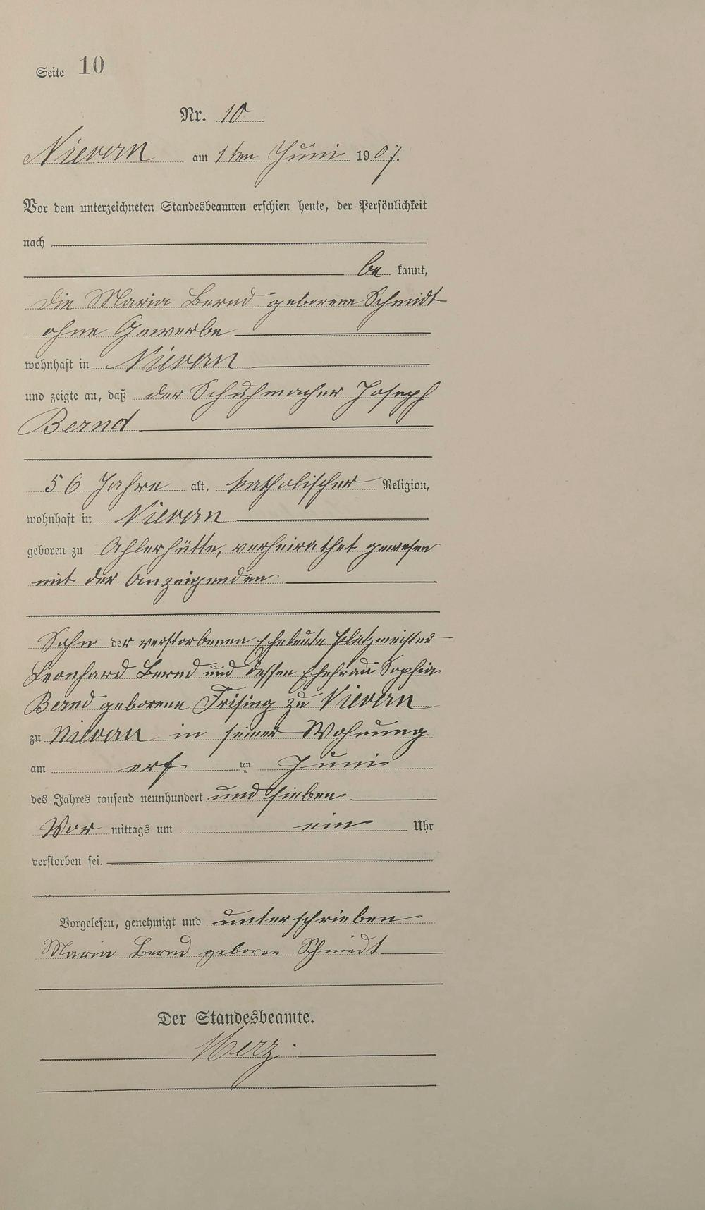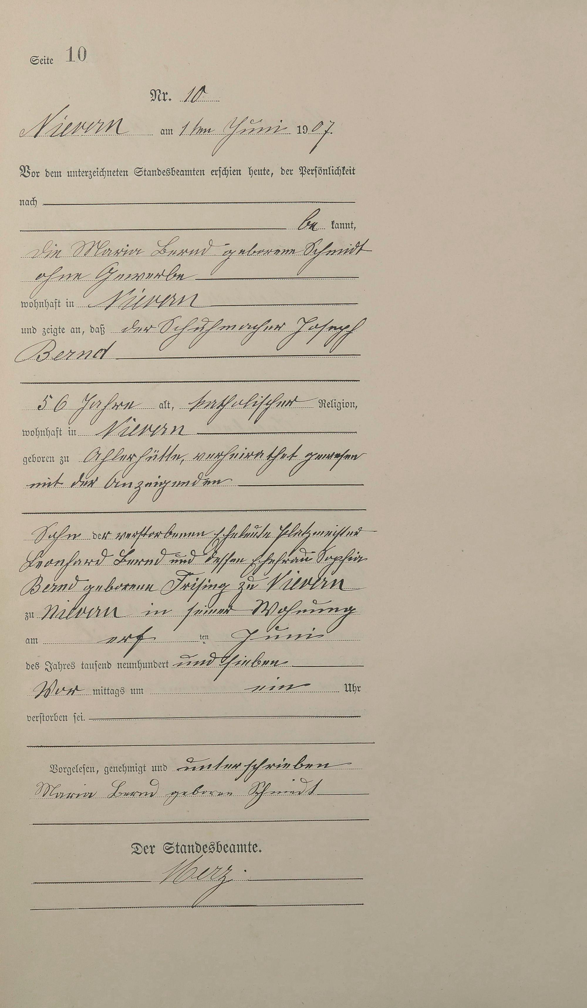 Sterberegister 1907