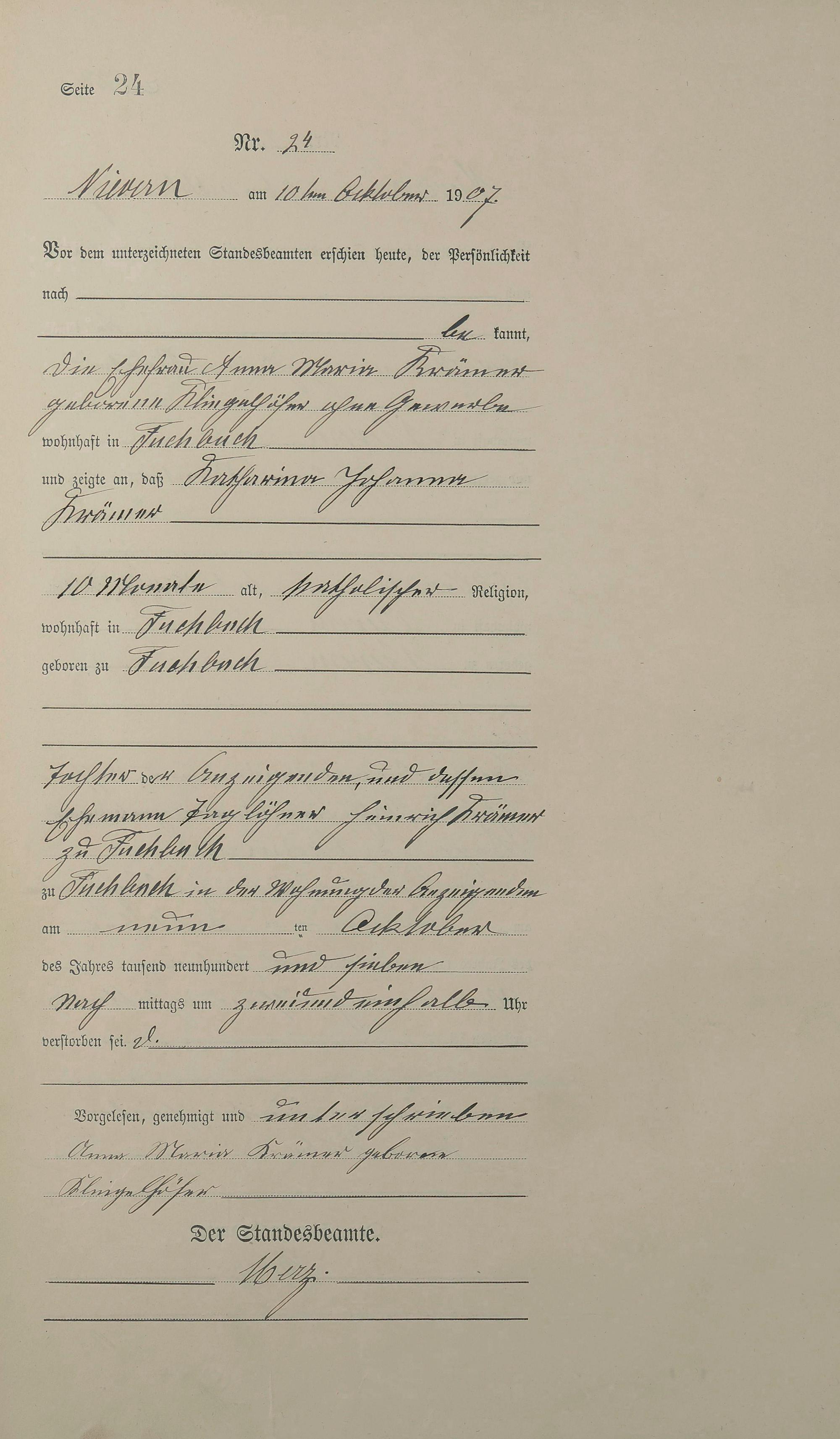 Sterberegister 1907
