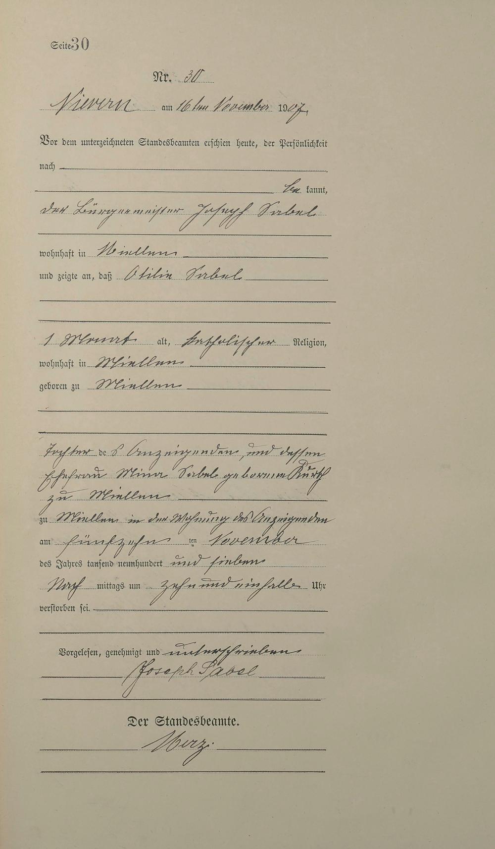 Sterberegister 1907