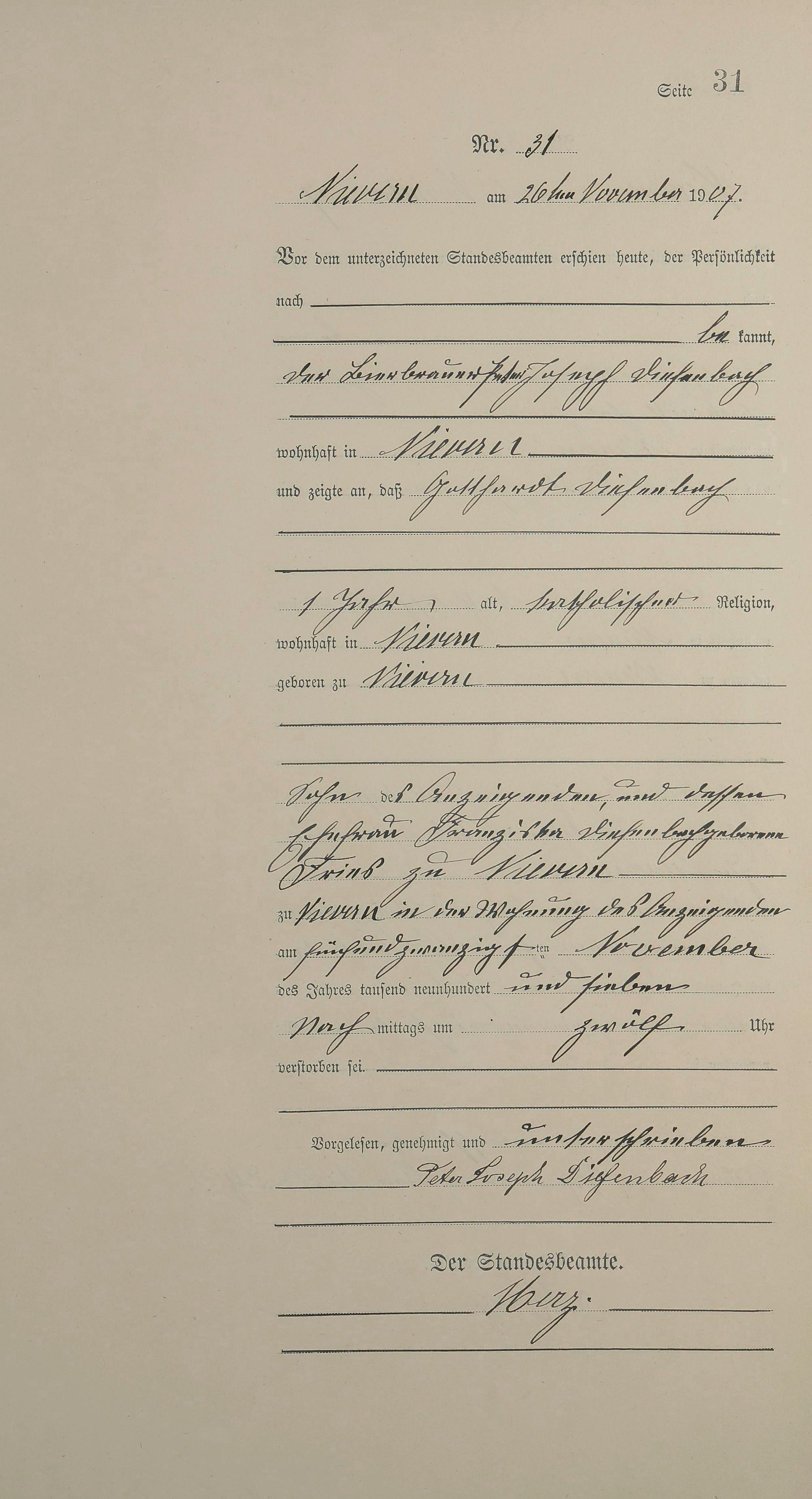 Sterberegister 1907