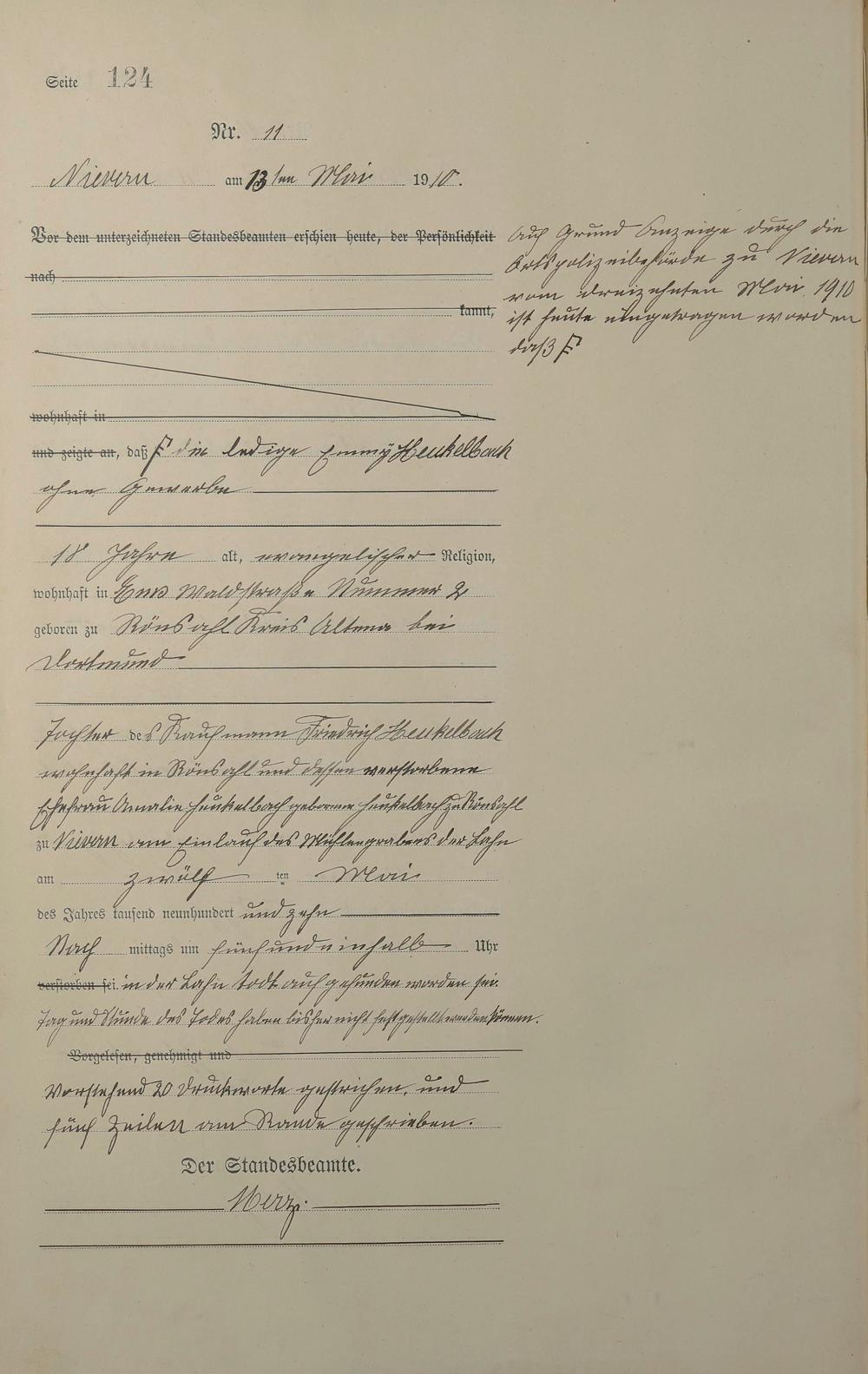 Sterberegister 1910