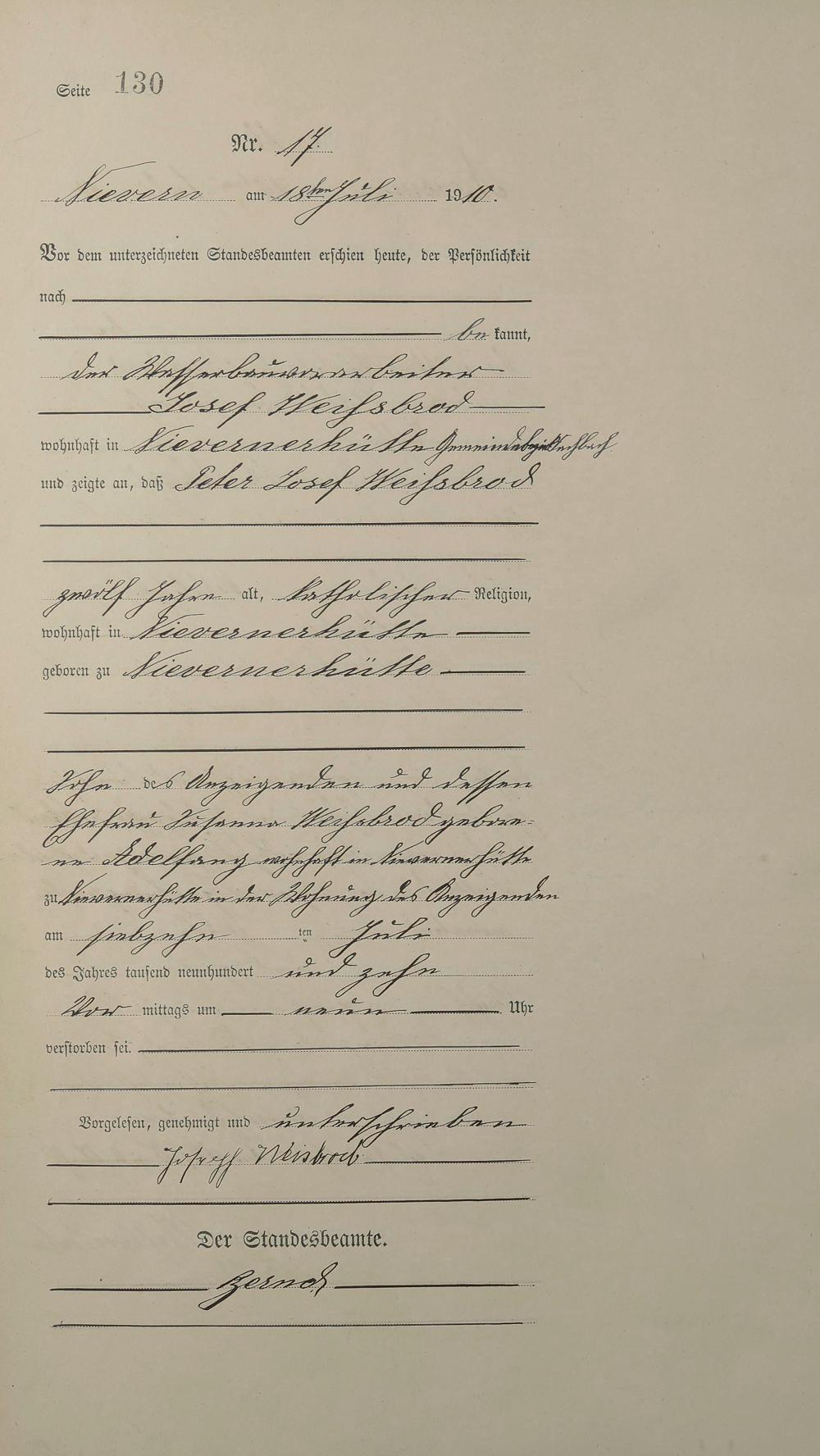 Sterberegister 1910