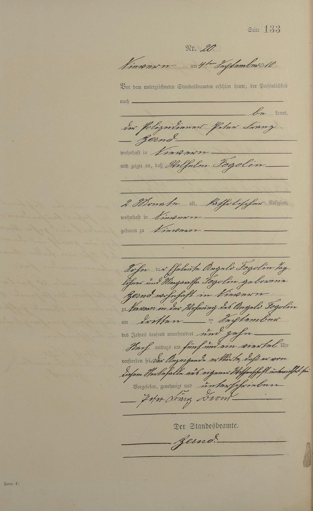 Sterberegister 1910