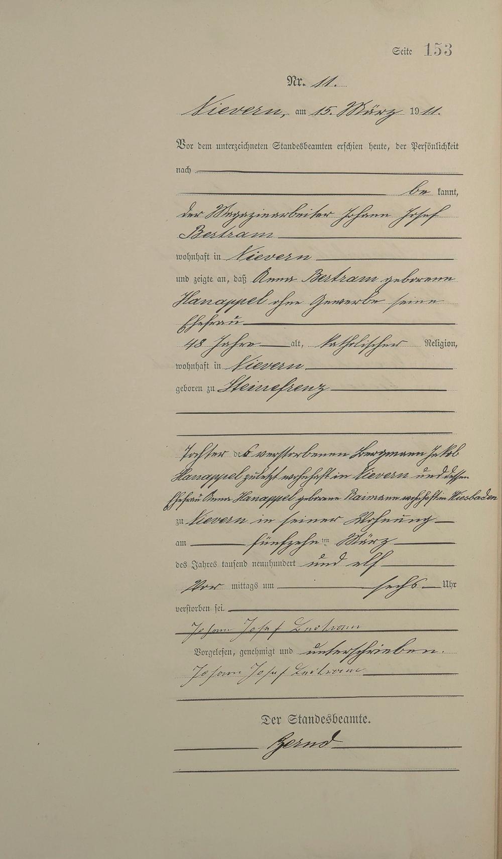 Sterberegister 1911