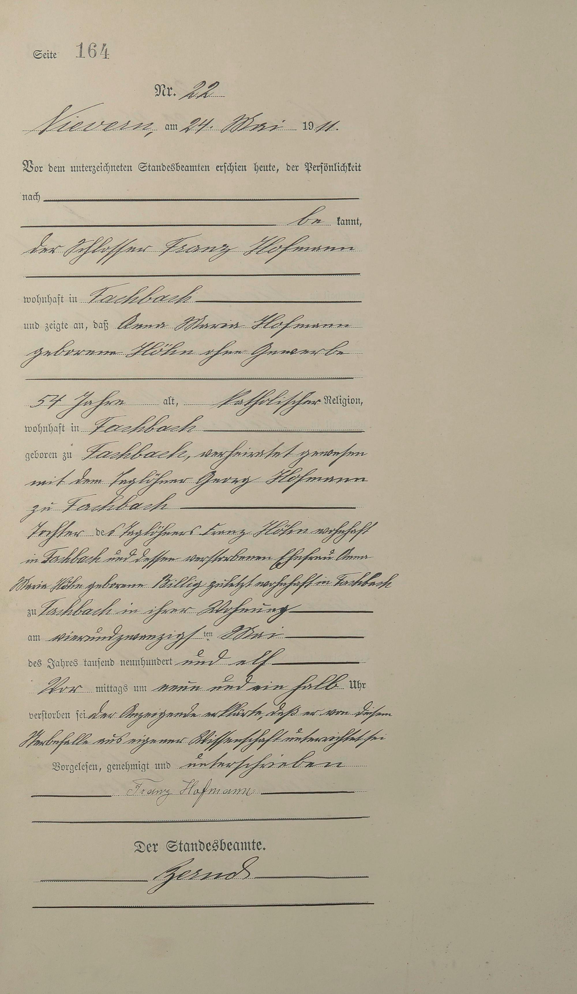 Sterberegister 1911