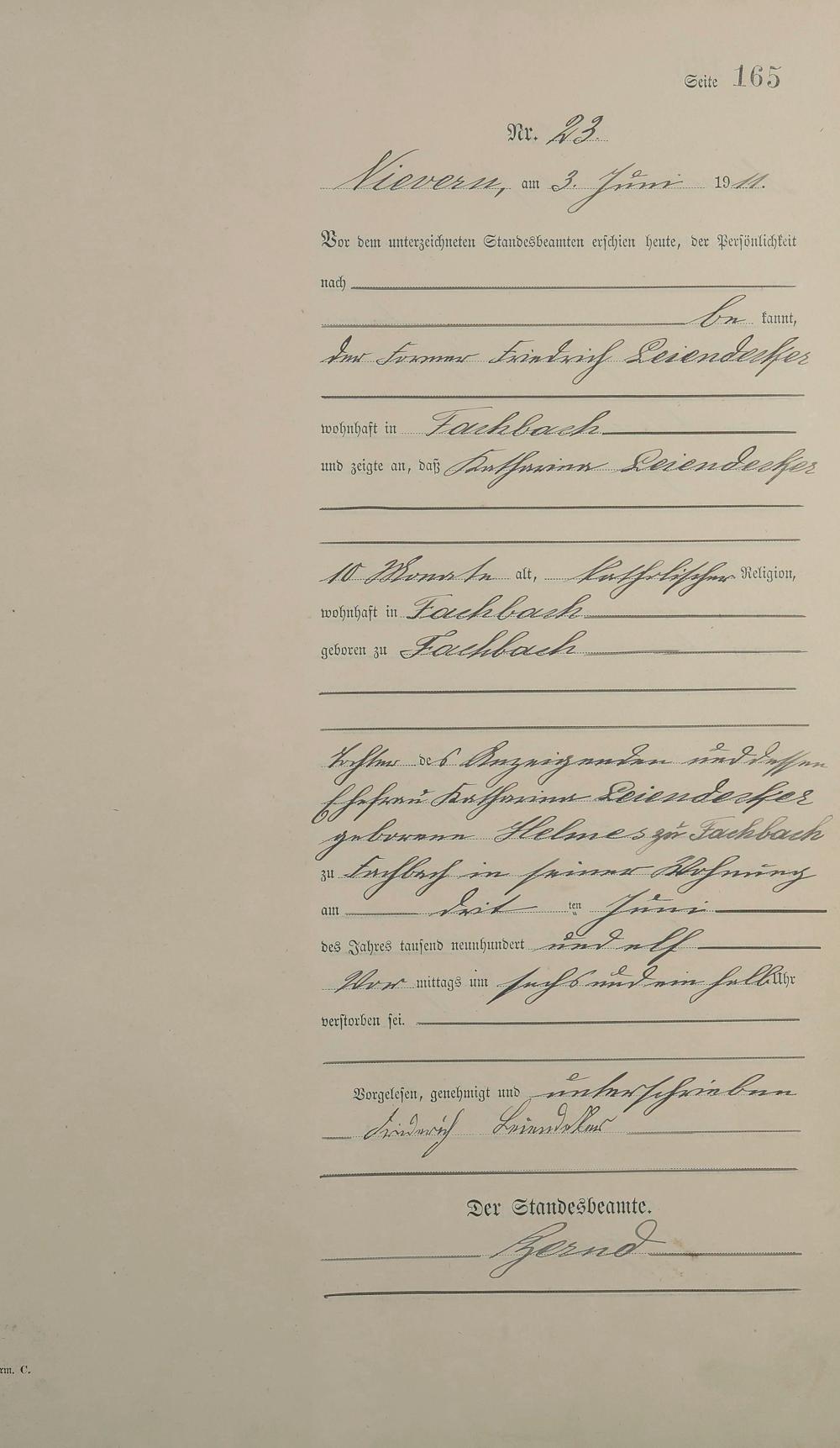 Sterberegister 1911