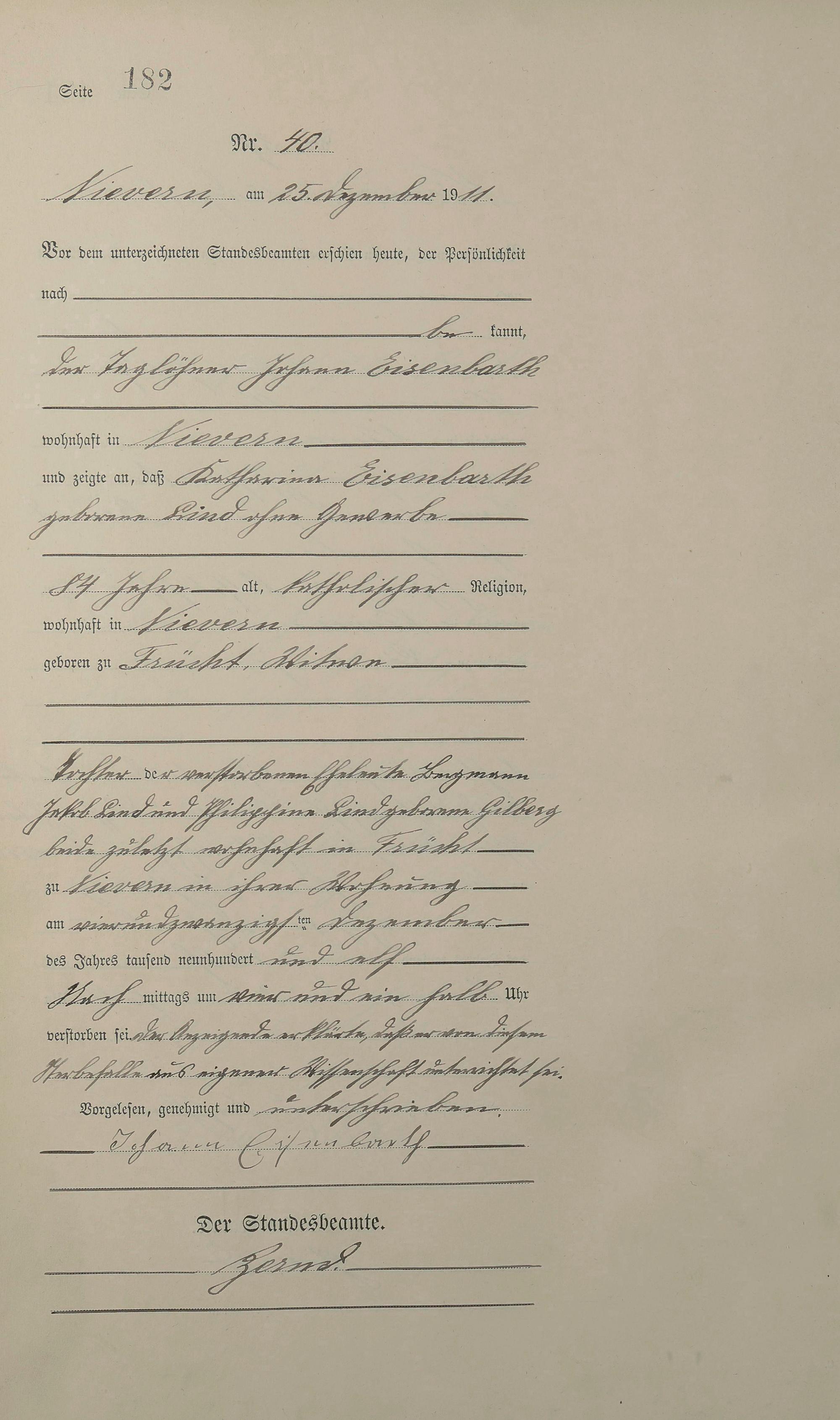 Sterberegister 1911