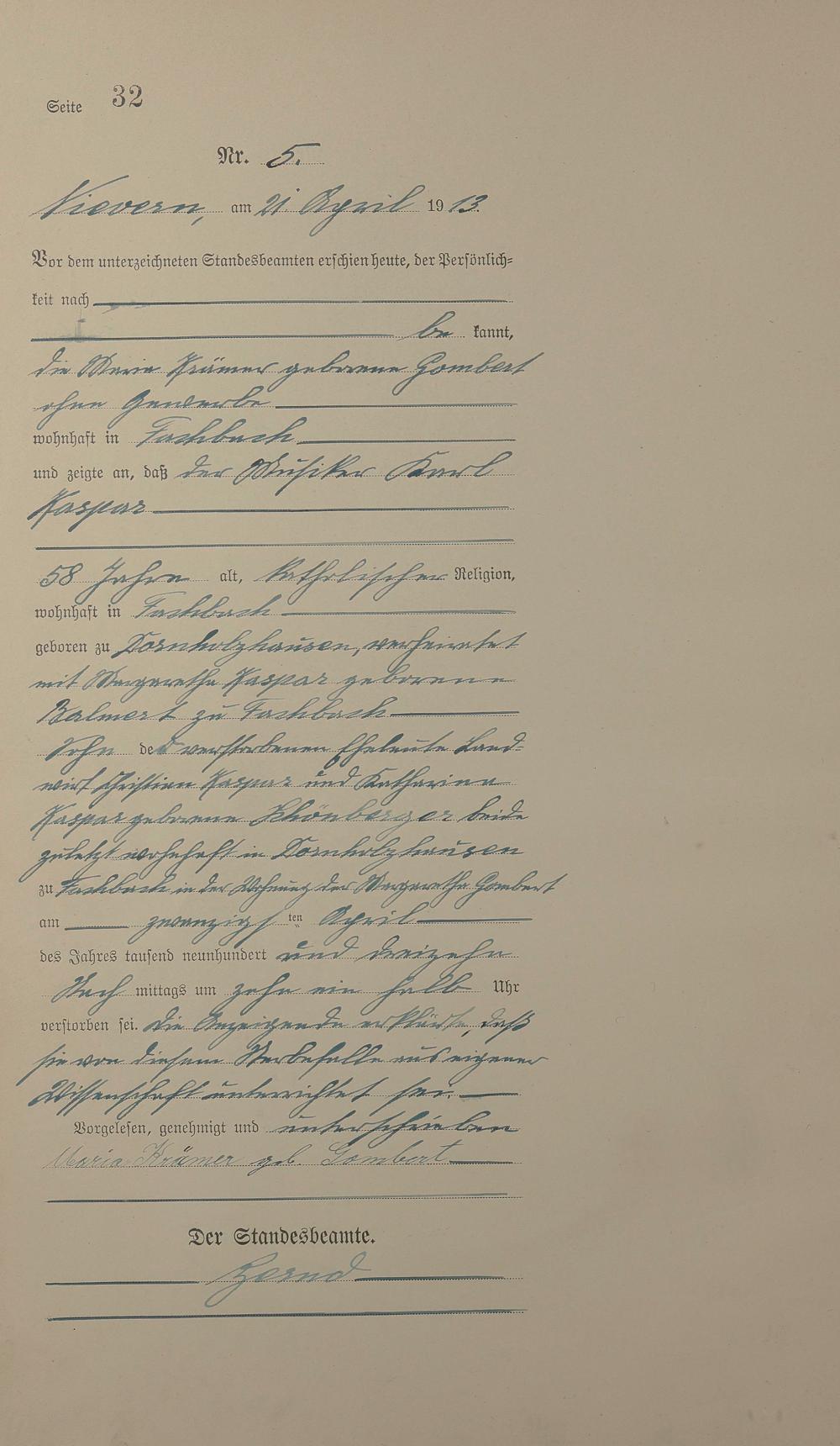 Sterberegister 1913