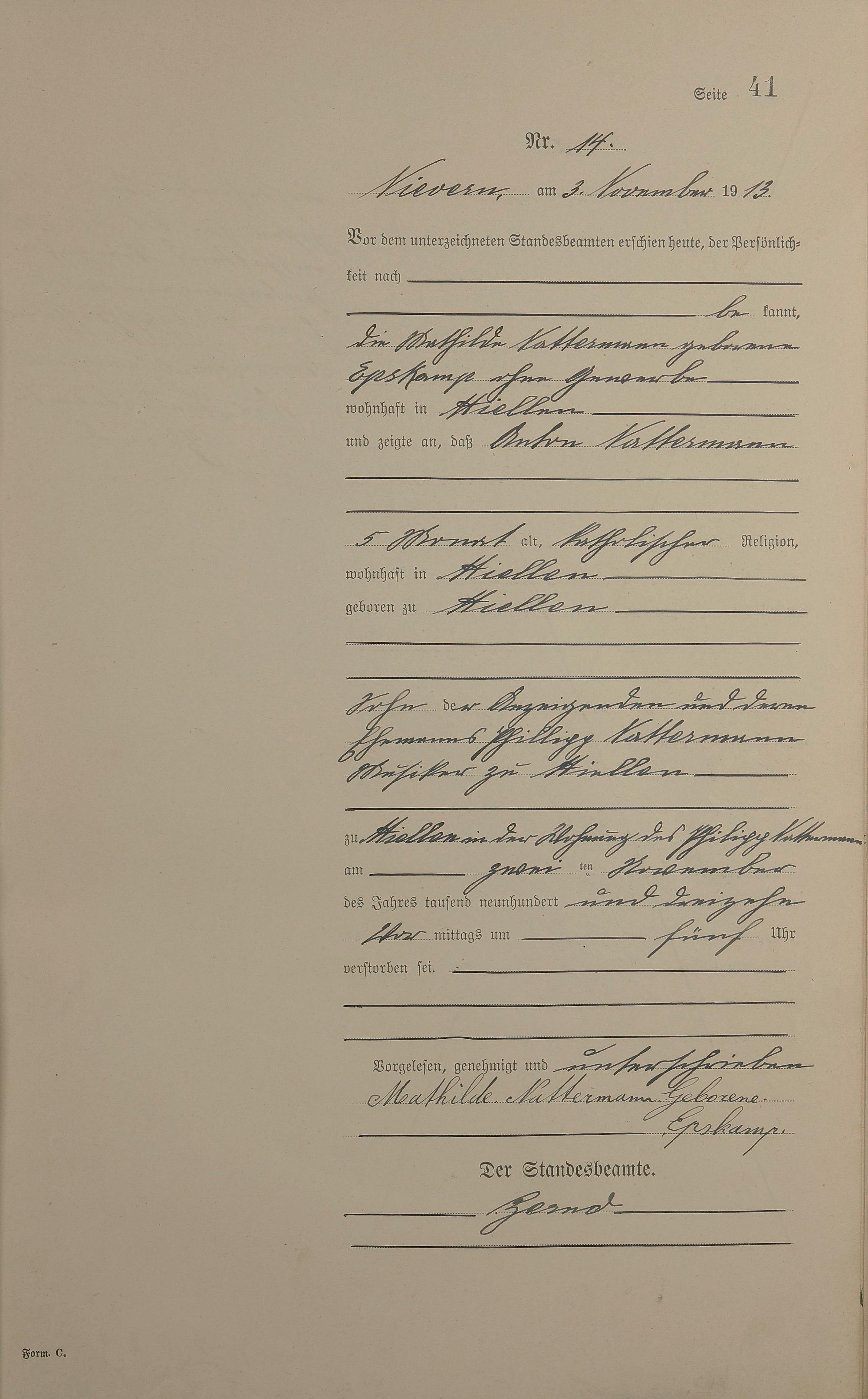 Sterberegister 1913