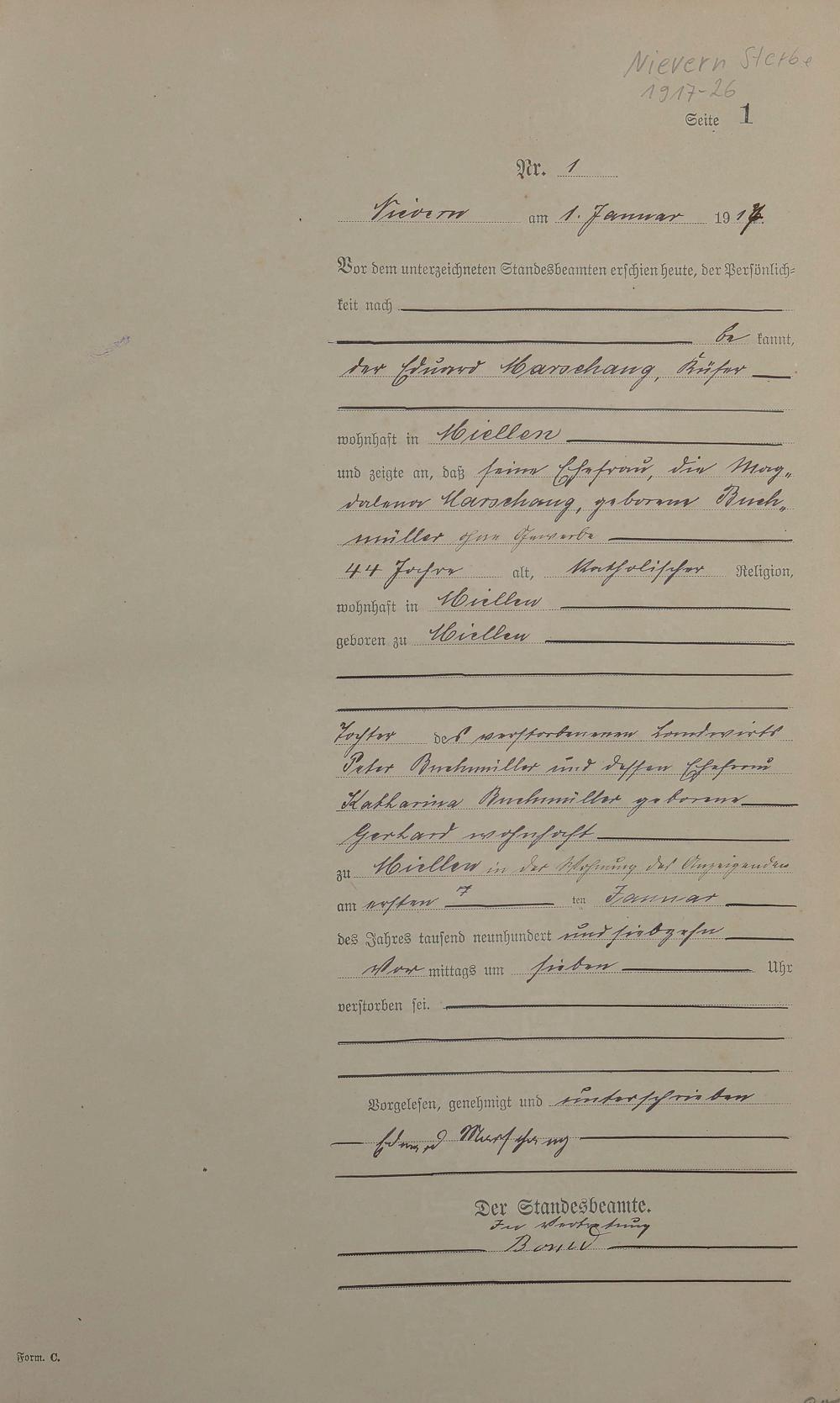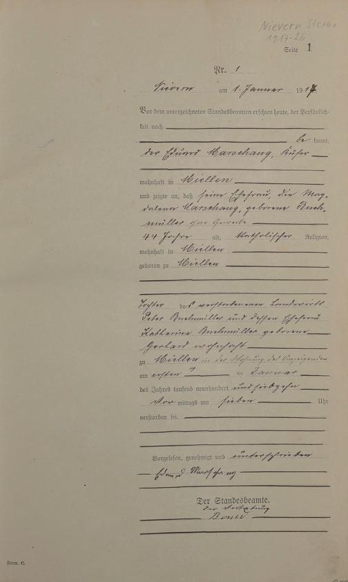 291/1: Sterberegister 1917