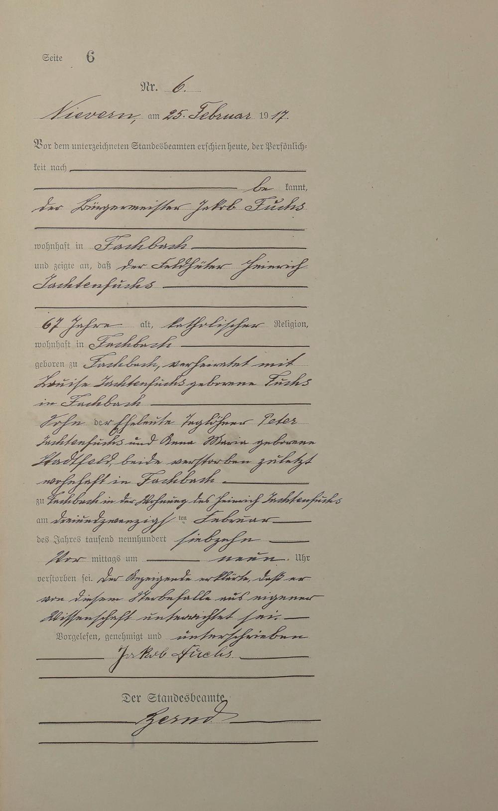 Sterberegister 1917