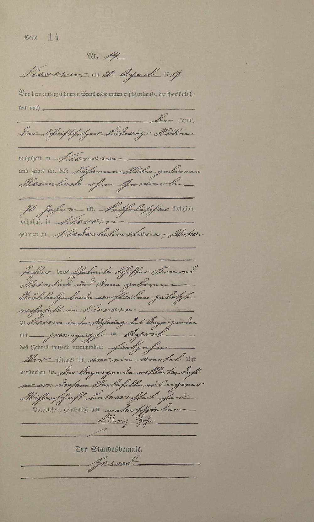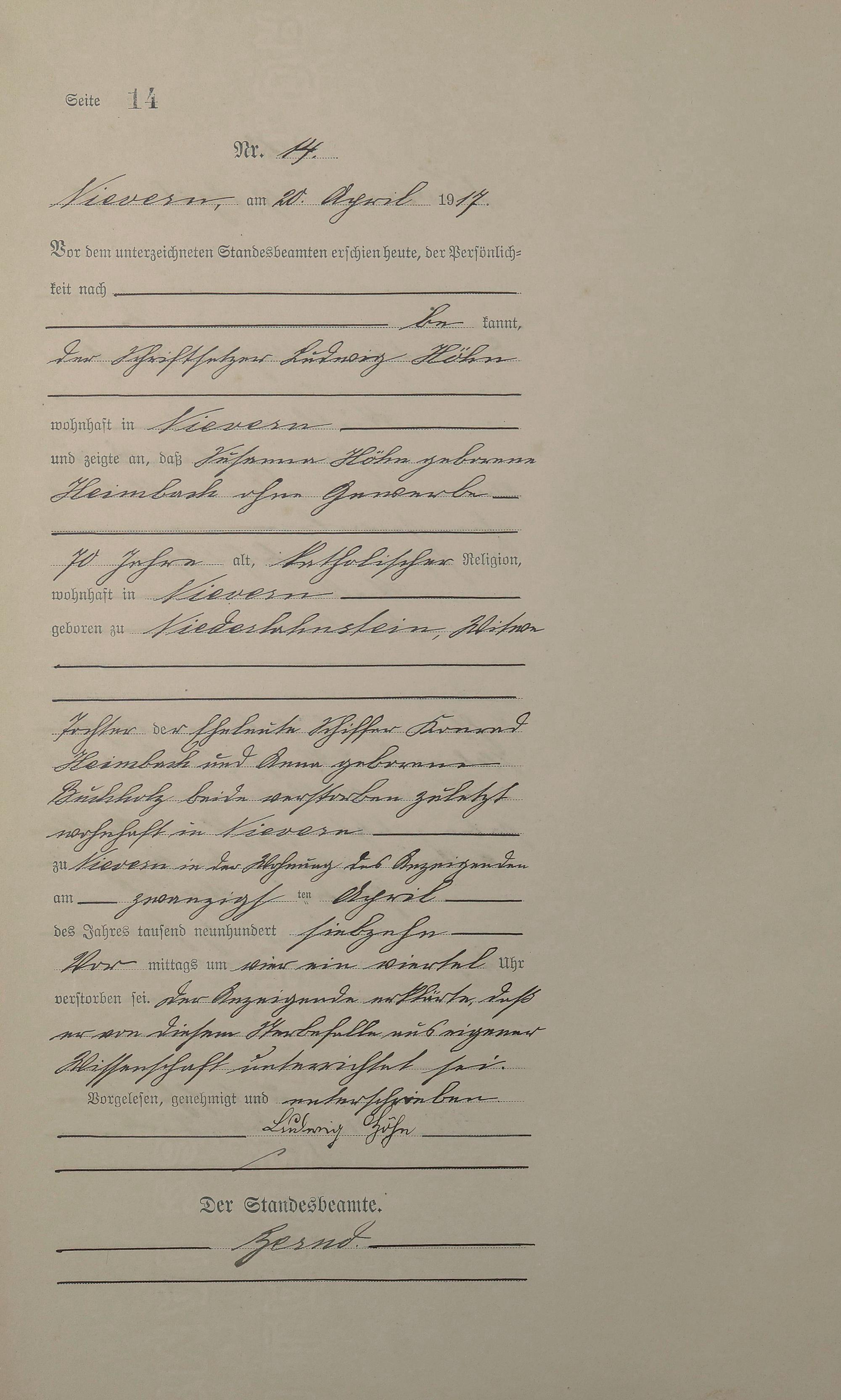 Sterberegister 1917