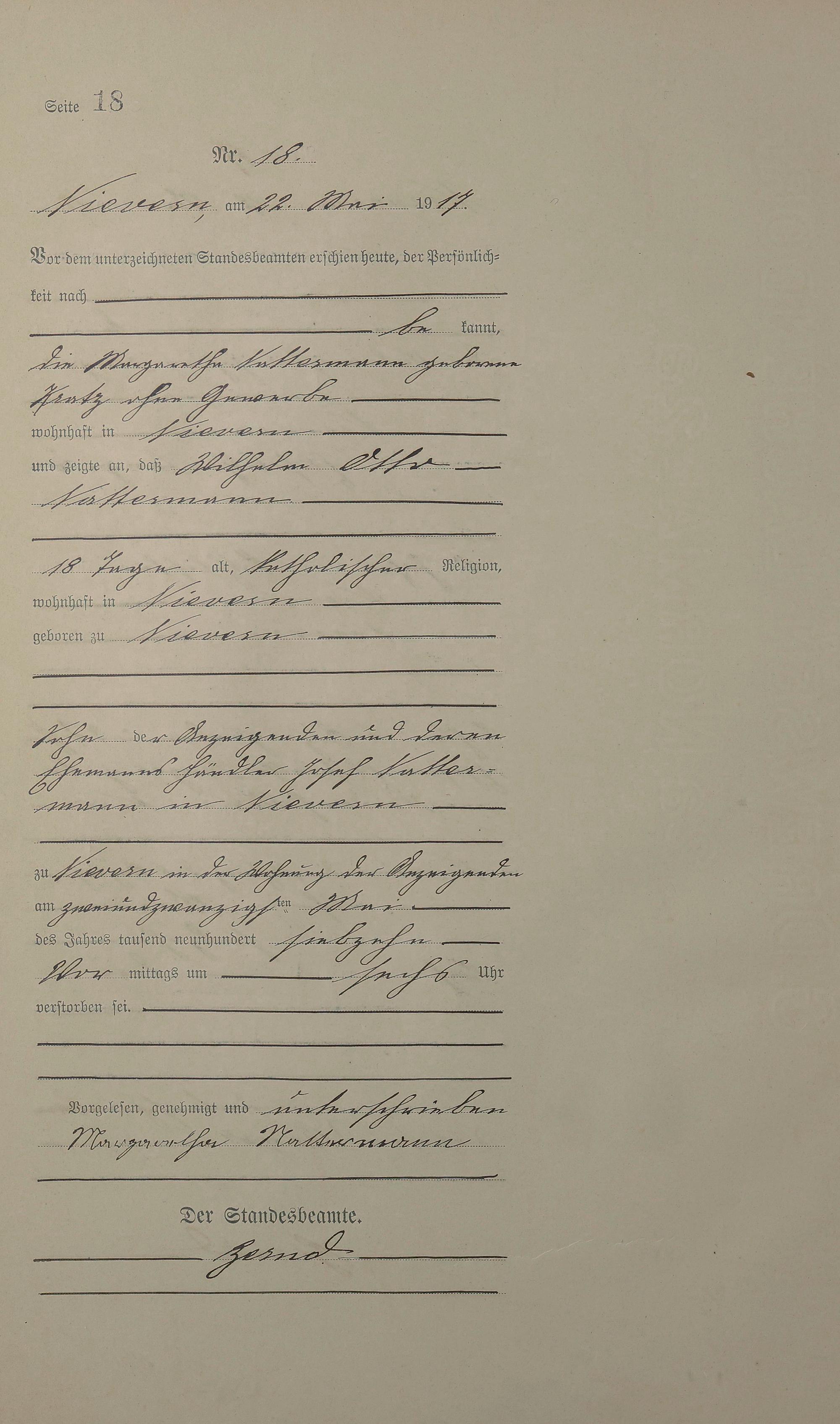 Sterberegister 1917