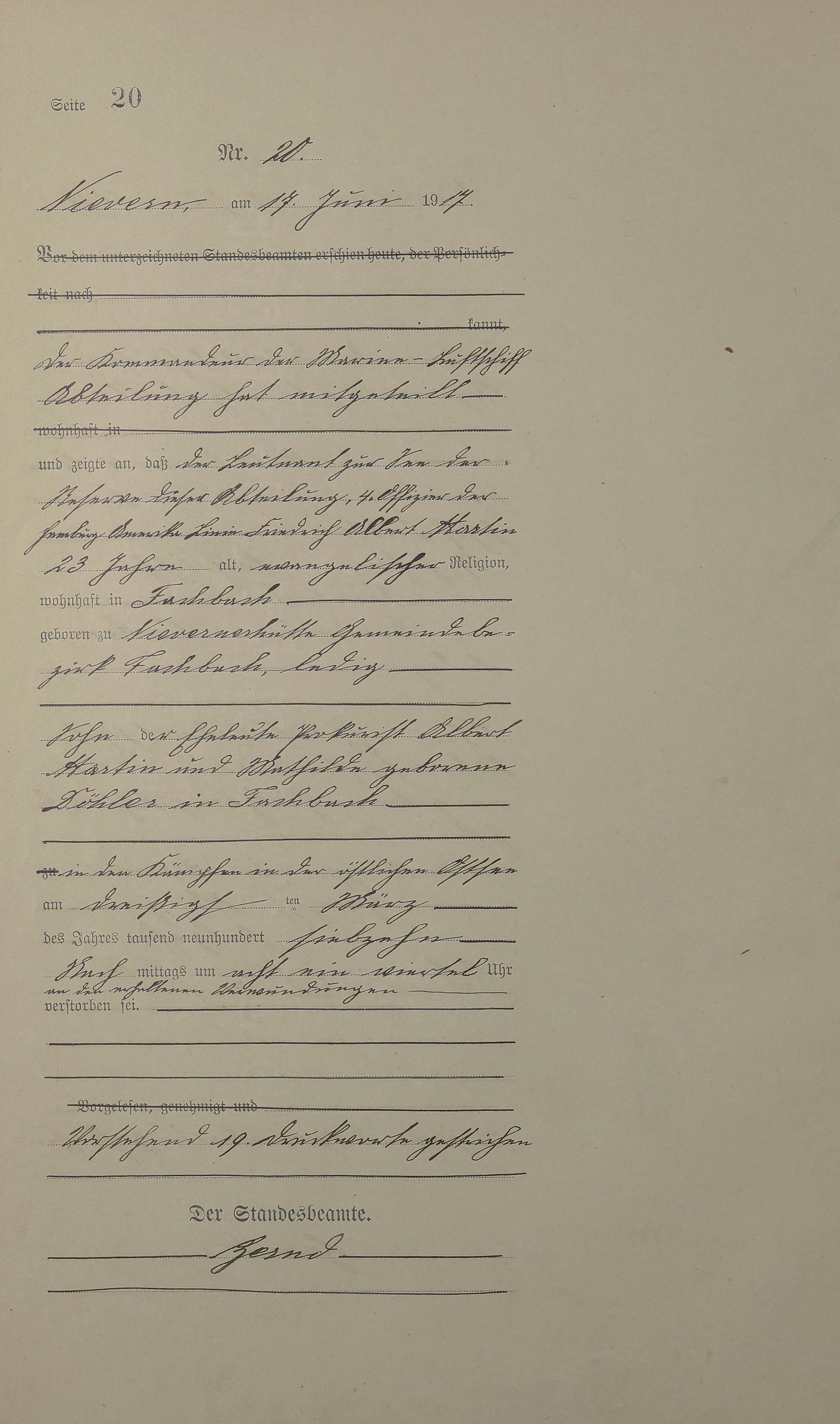 Sterberegister 1917