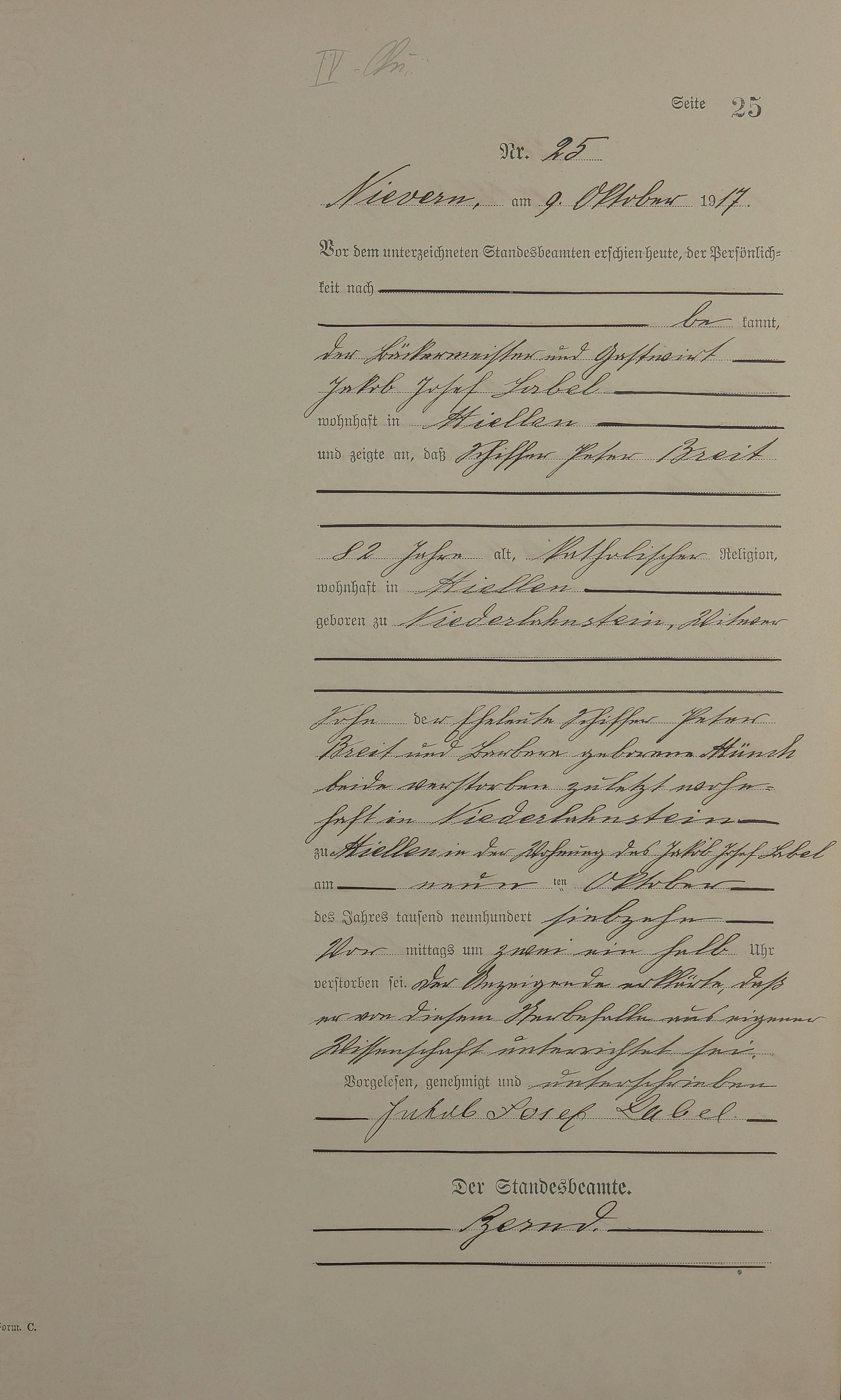 291/1: Sterberegister 1917