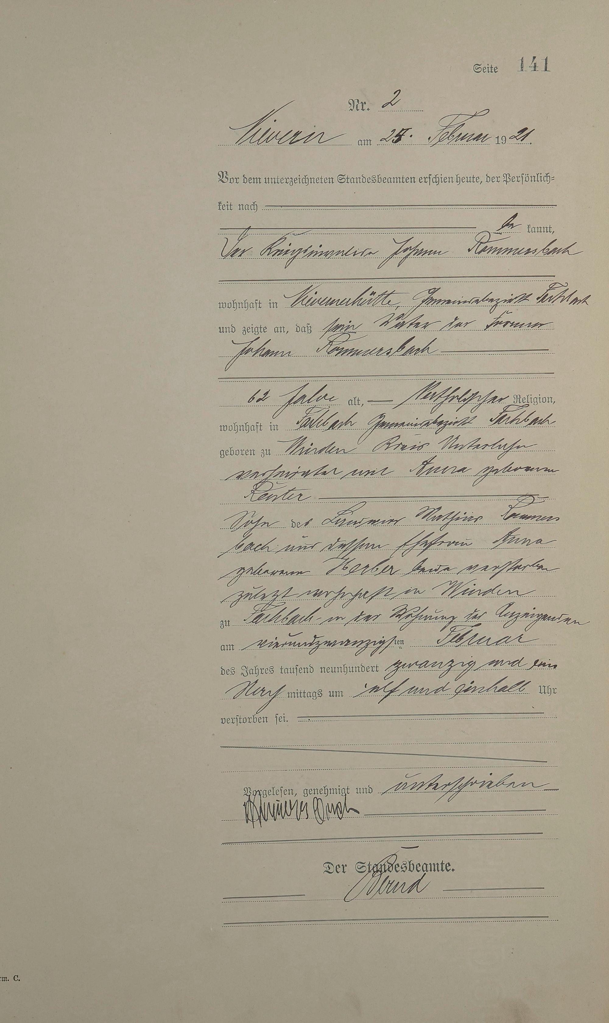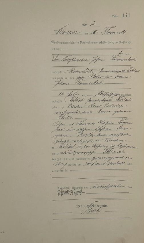 Sterberegister 1921