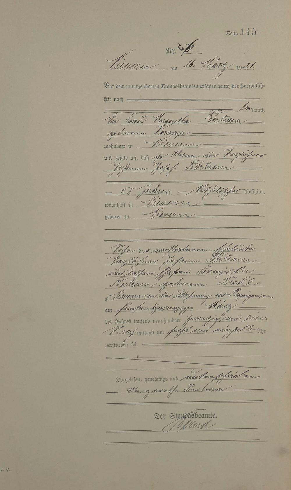 Sterberegister 1921