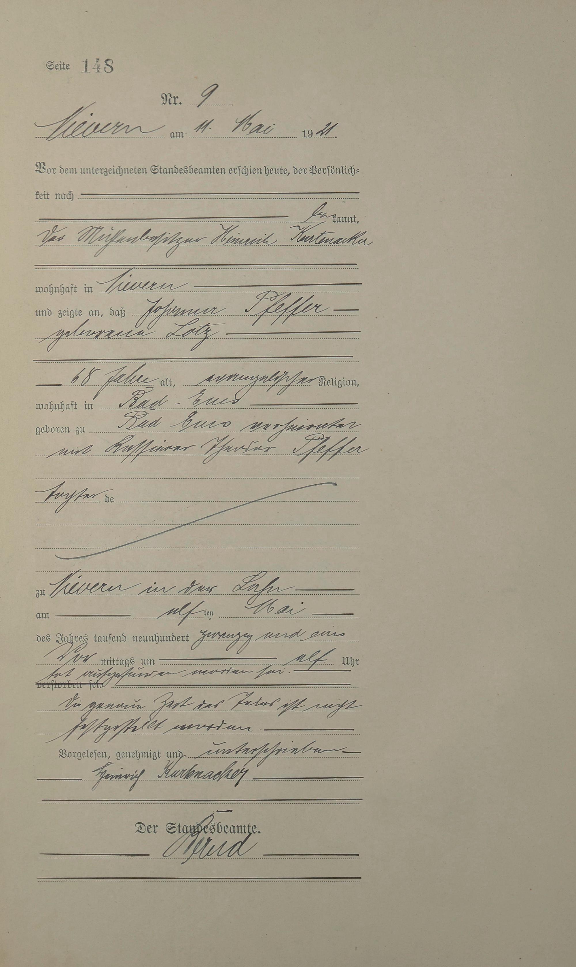 Sterberegister 1921