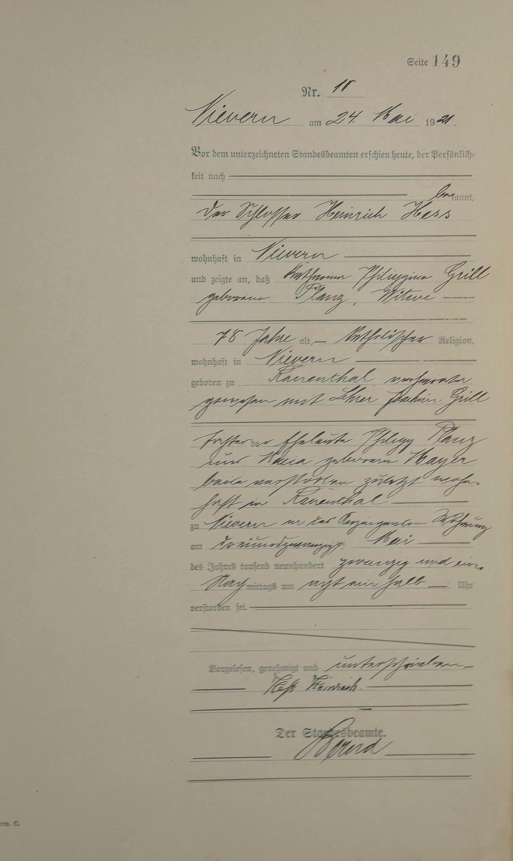 Sterberegister 1921